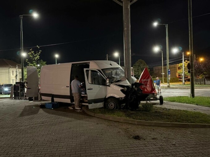 Un minor a furat un microbuz pregătit pentru Ziua Timișoarei și a intrat cu el într-un stâlp. Băiatul consumase alcool