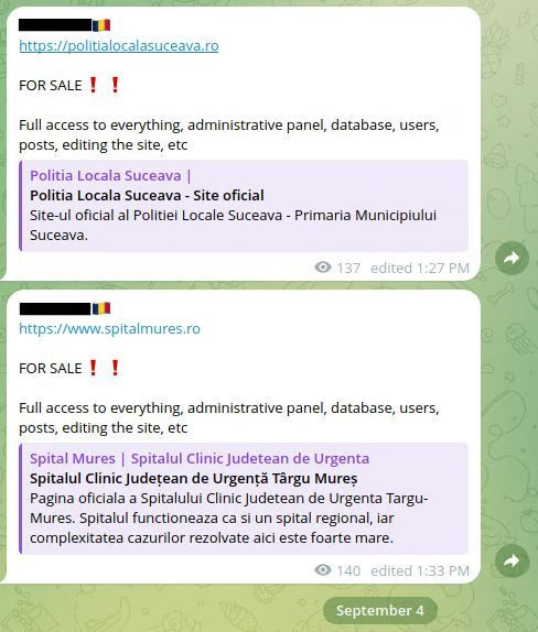 Expertul atrage atenția că site-urile celor două instituții au fost compromise și chiar scoase la vânare în schimbul unor sume pe care nu le-a dezvăluit. Astfel, hackerii susțin că pot oferi acces la bazele de date, utilizatori și chiar pot oferi acces la conținutul paginilor de internet.