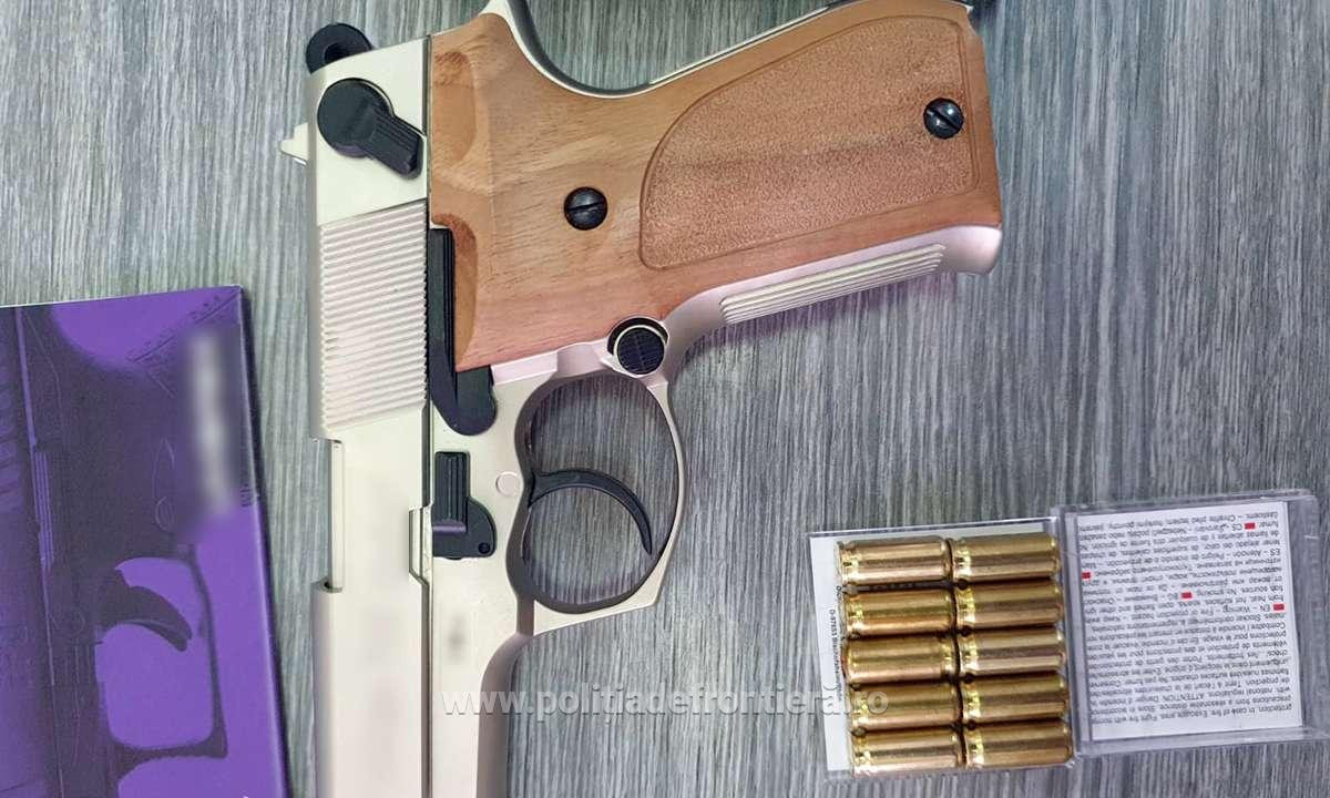 Totodată, în timpul controlului vamal, bărbatul a afirmat că deţine, în rucsacul fiicei sale, un pistol cu gaze marca Walther, calibru 9 mm, precum şi o cutie cu 10 cartuşe cu încărcătură iritantă cu piper, acelaşi calibru.