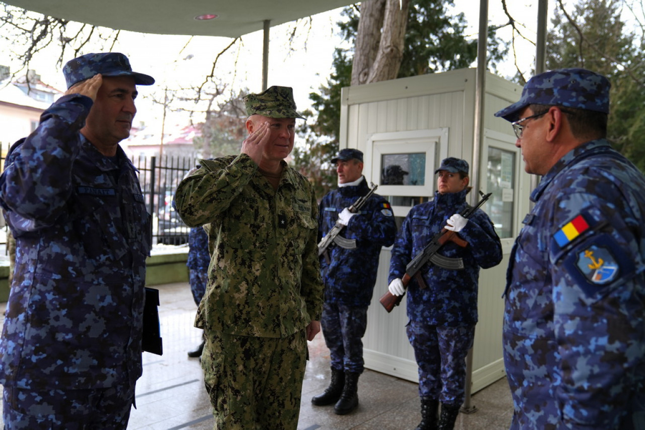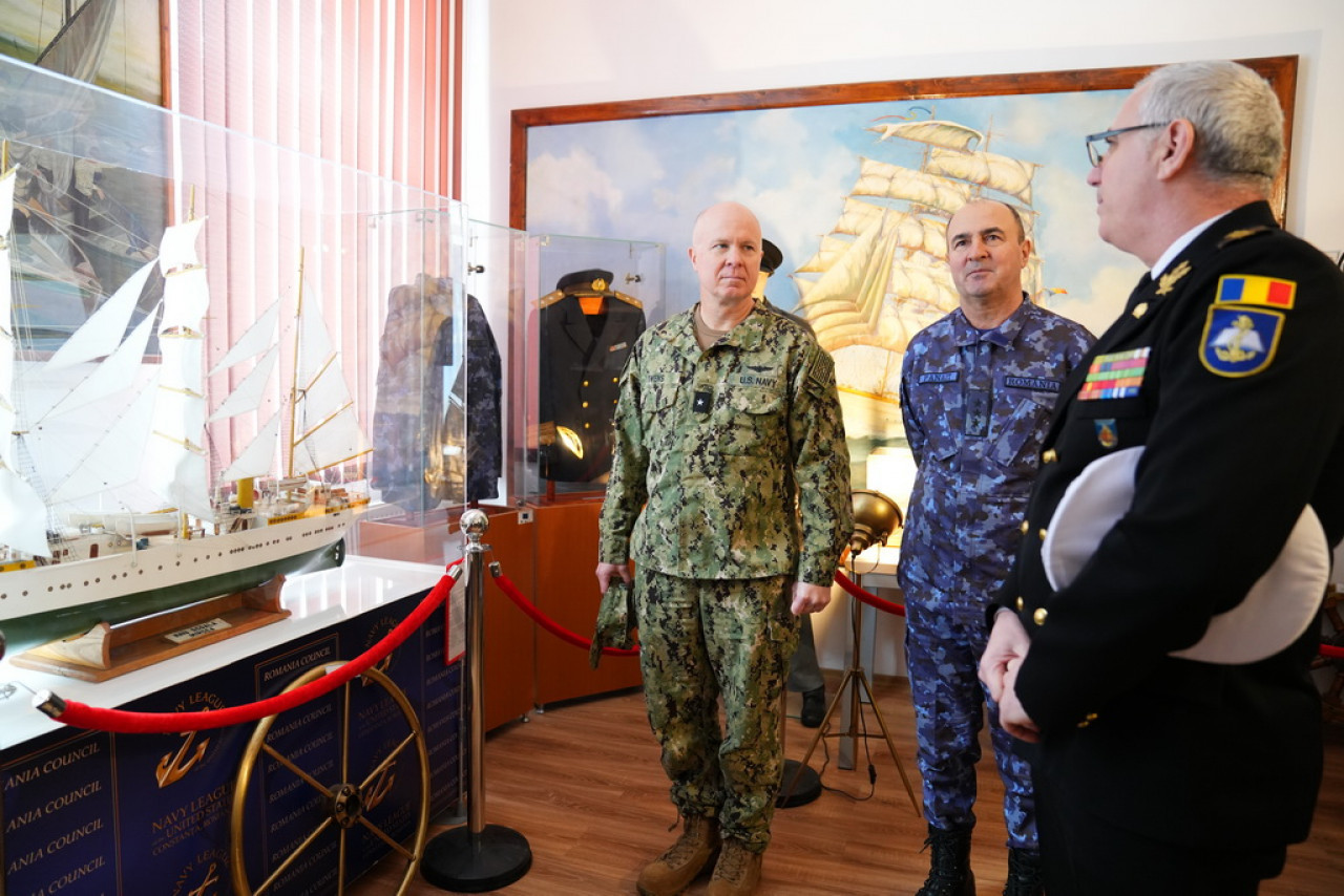 Un șef al Marinei Americane a vizitat joi și vineri mai multe obiective strategice ale Forțelor Navale Române, printre care Academia Navală, fregata ”Regina Maria”, Centrul 39 de Scafandri, dar și Divizionul 508 Rachete de Coastă al Forțelor Navale.