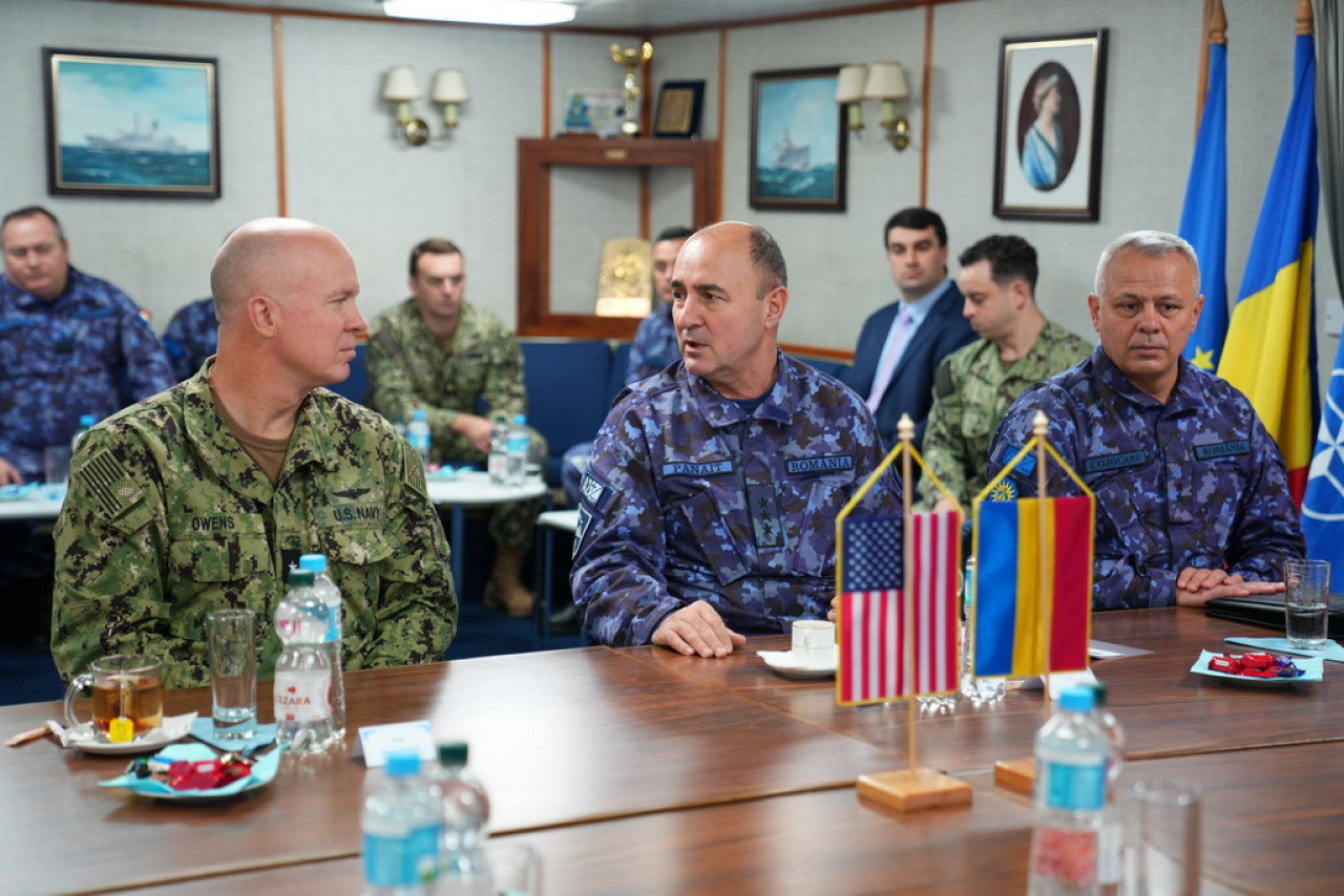 Detalii despre vizita înaltului oficial al Marinei SUA au venit de la Forțele Navale Române. Potrivit acestora, șeful Statului Major al Forțelor Navale, viceamiralul Mihai Panait, a primit joi, 15 ianuarie, la Constanța, vizita oficială a delegației conduse de directorul Biroului de Programe Internaționale al Marinei Statelor Unite ale Americii (NIPO), contraamiralul de flotilă Raymond P. Owens III.