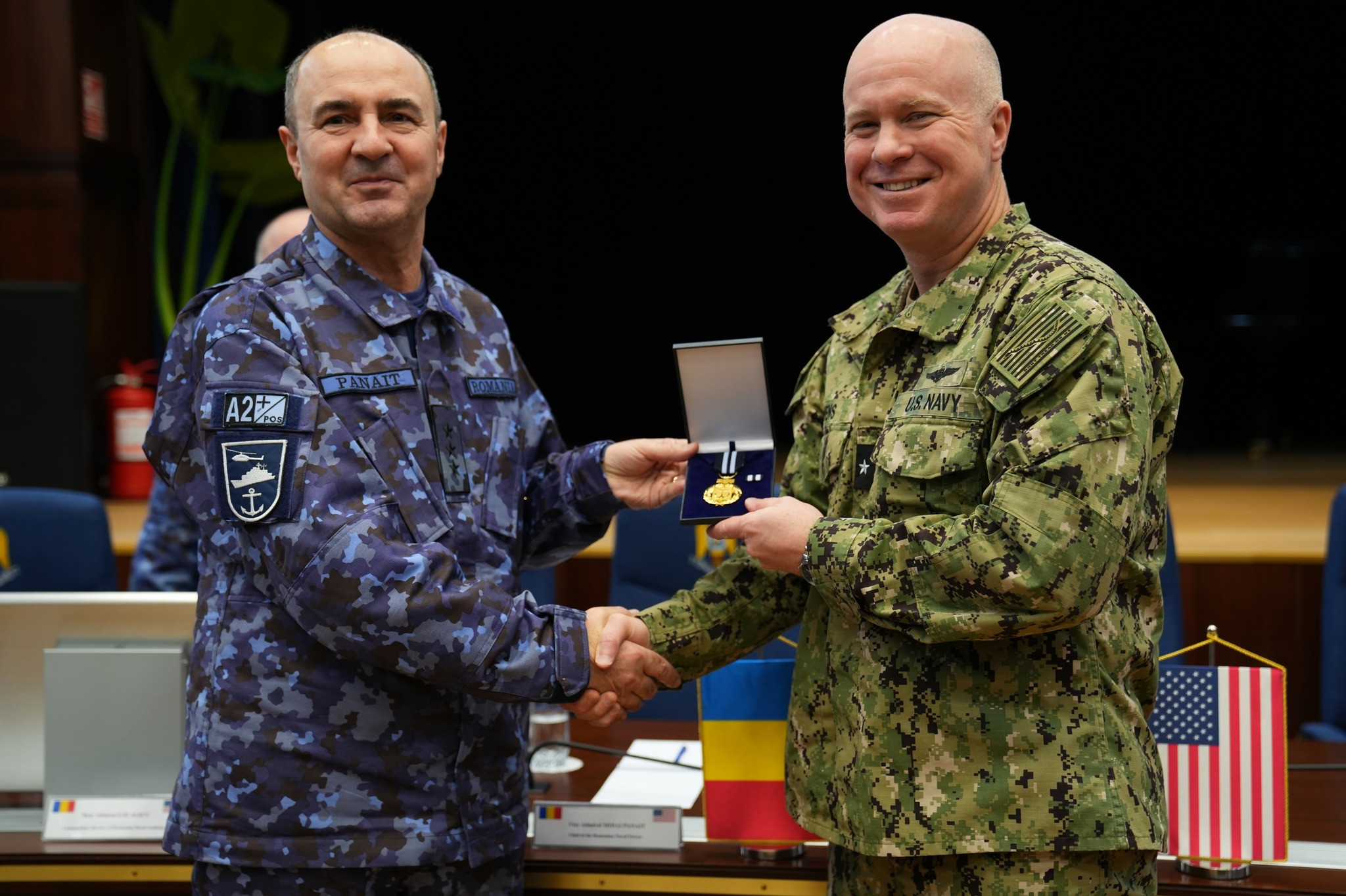 În semn de apreciere pentru colaborarea deosebită dintre Forțele Navale Române și Biroul de Programe Internaționale al Marinei Statelor Unite ale Americii, viceamiralul Mihai Panait a conferit directorului structurii, contraamiralului de flotilă Raymond P. Owens III, Emblema de Onoare a Forțelor Navale.