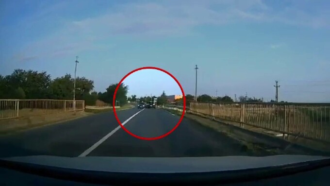 Un alt participant la trafic a filmat scena, în care se vede mașina care vine din față și intră pe contrasens.