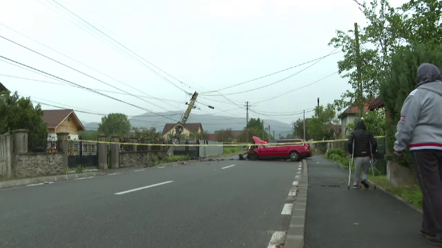 Un șofer a lăsat un sat din Gorj fără curent electric, după ce a intrat într-un stâlp încercând să evite o pisică