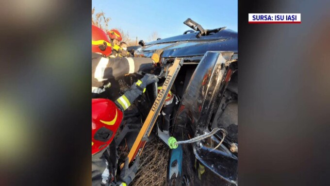 Un șofer de 20 de ani s-a răsturnat cu mașina într-un șanț, în Iași, după o depășire pe linia continuă