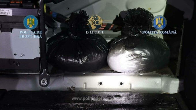 Substanţele au fost descoperite în cotiera şi portbagajul maşinii, ambalate în role din material textil şi în plicuri din plastic.