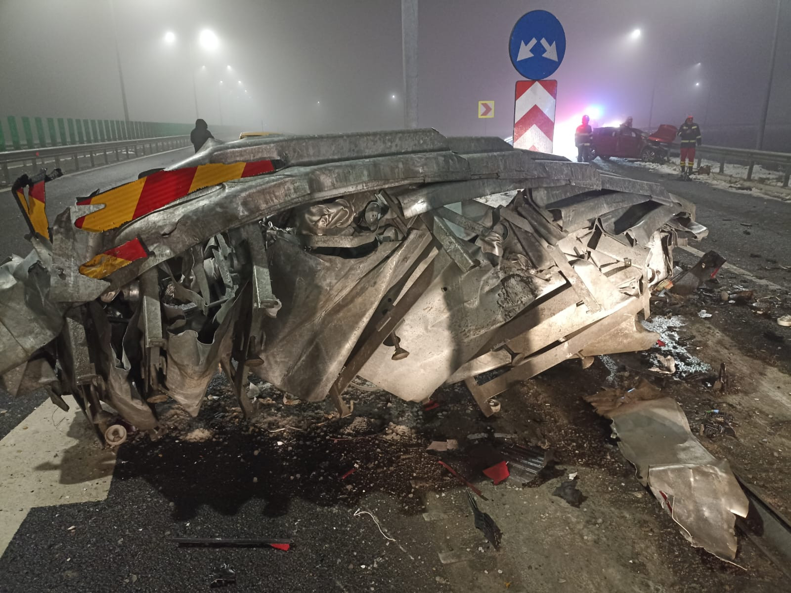 „Ceață cu vizibilitate sub 200 de metri. Neadaptarea vitezei, acul vitezometrului s-a oprit la 183 de km/h. Fără experiență, șofer începător. Toate sunt elemente care pot provoca o adevărată tragedie, din fericire azi-noapte singurele "victime" au fost mașina și elementele de siguranță ale drumului. Evenimentul a avut loc pe DEx12, nod Morunglav. Circulați cu atenție! Viteza ucide! La momentul producerii evenimentului partea carosabilă era curată și umedă”, a transmis DRDP Craiova.