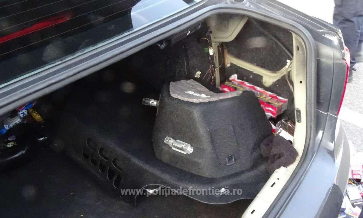 După ce au controlat autoturismul, oamenii legii au descoperit 24.980 de țigarete (1.249 de pachete), ascunse în bagaje, în capitonajul portbagajului, în locașuri special amenajate sub caroserie, precum și în roata de rezervă. Țigaretele, de diferite mărci și având timbru fiscal bulgăresc, nu erau însoțite de documente de proveniență. Întreaga cantitate de țigarete, evaluată la aproximativ 32.637 lei, precum și autoturismul utilizat pentru transport, au fost indisponibilizate și introduse în camera de corpuri delicte a Poliției de Frontieră.