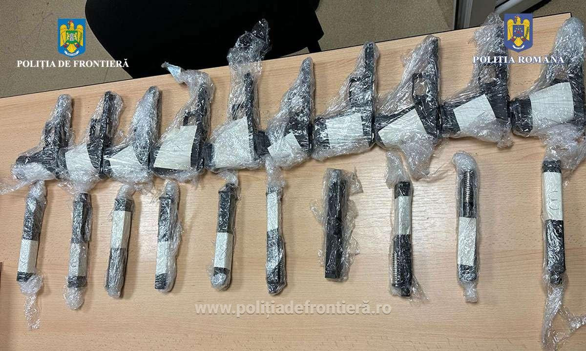 "În dimineaţa zilei de 16 noiembrie a.c., poliţiştii Serviciului Arme Explozivi şi Substanţe Periculoase din cadrul Inspectoratului de Poliţie Judeţean Dolj au reţinut, pentru 24 de ore, un tânăr de 25 de ani, cetăţean turc, bănuit de comiterea infracţiunilor de nerespectarea regimului armelor şi muniţiilor şi contrabandă calificată. În fapt, în seara zilei de 15 noiembrie a.c., poliţiştii de frontieră din cadrul Sectorului Poliţiei de Frontieră Calafat l-au depistat pe tânăr, în flagrant delict, pe sensul de intrare în ţară, în timp ce transporta, într-un rucsac din cabina camionului pe care îl conducea, pe ruta Turcia-Germania, 10 pistoale cu încărcătoare aferente, fără muniţie, pentru care nu a putut prezenta documente de provenienţă. Cercetările au fost preluate de poliţiştii din cadrul Serviciului Arme Explozivi şi Substanţe Periculoase Dolj, care din declaraţiile tânărului, au stabilit faptul că acesta, în calitate de conducător auto, ar fi plecat la data de 12 noiembrie a.c., de pe teritoriul Turciei, cu destinaţia Germania, iar într-o parcare din apropierea oraşului Edirne, Turcia, ar fi fost abordat de un cetăţean turc, care i-ar fi solicitat să transporte 10 pistoale fără muniţie, pe care să le predea ulterior unei persoane necunoscute, într-o parcare din apropierea oraşului Frankfurt, Germania", informează, luni, Inspectoratul de Poliţie Judeţean (IPJ) Dolj.