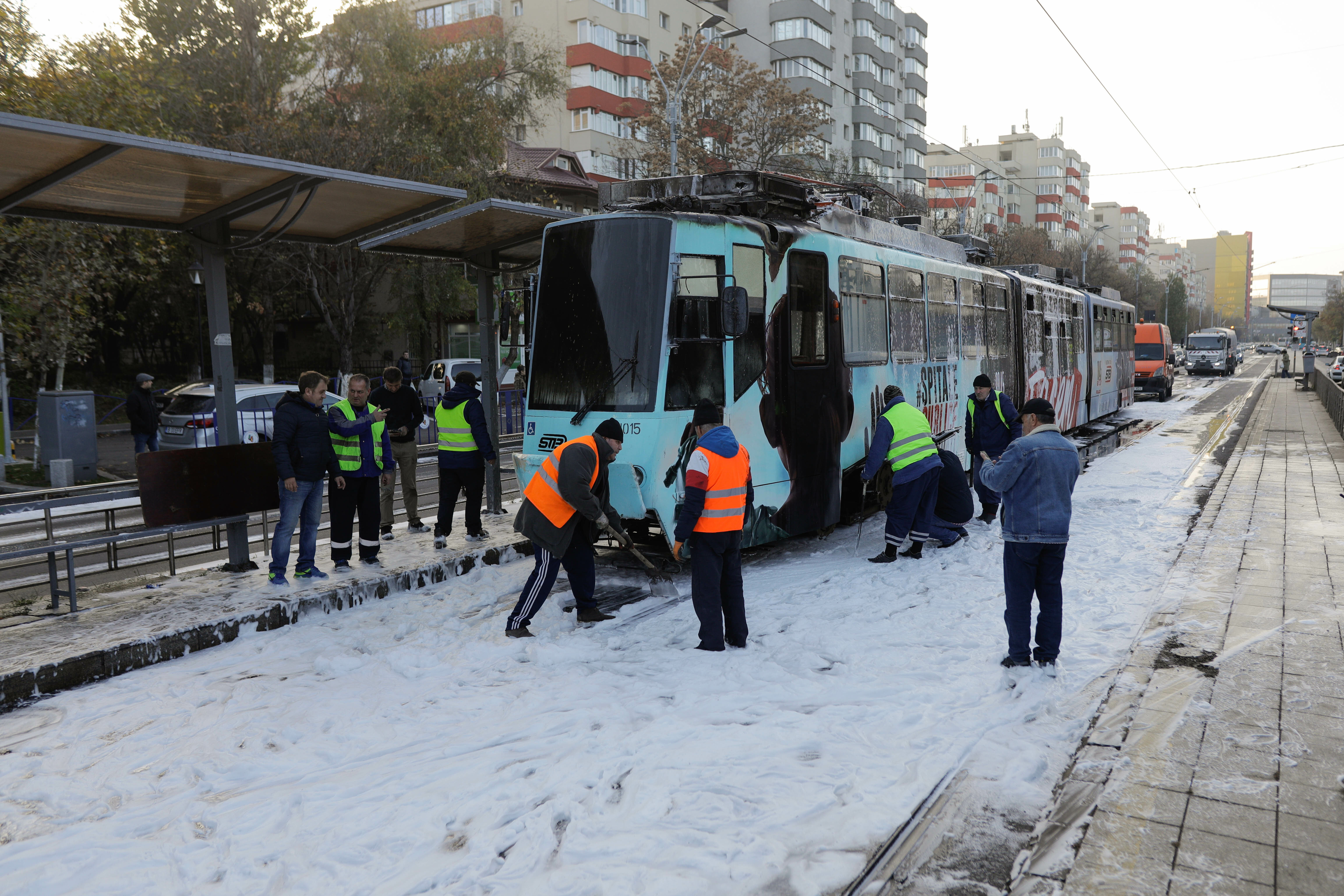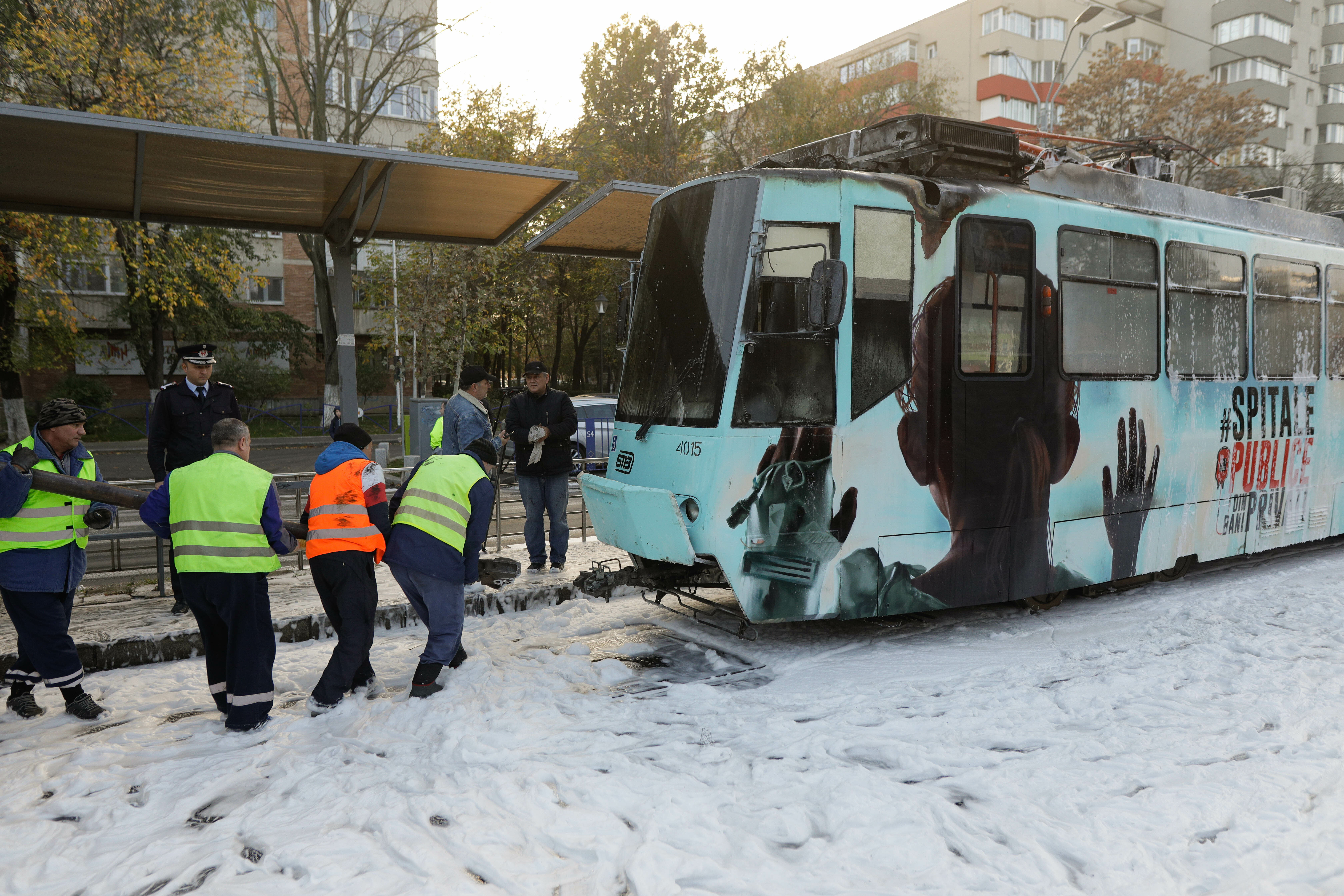 După observarea incendiului, vatmanul a acționat cu stingătoarele din dotarea tramvaiului