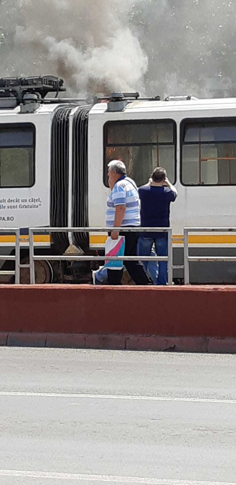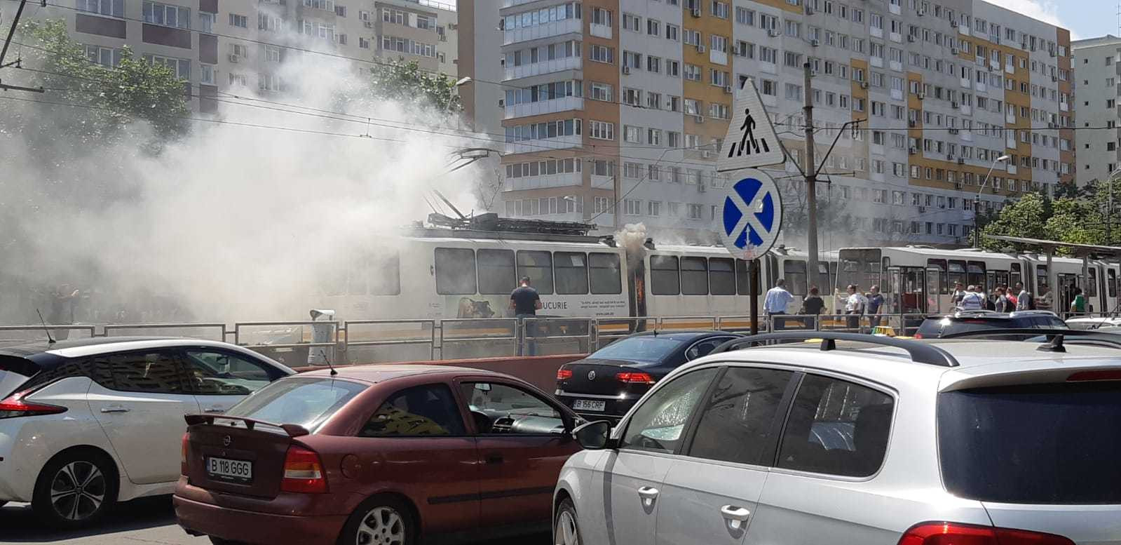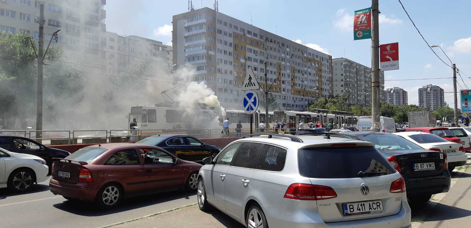 Un tramvai a luat foc, miercuri după amiază, în una din cele mai aglomerate zone ale Capitalei, cartierul Dristor.