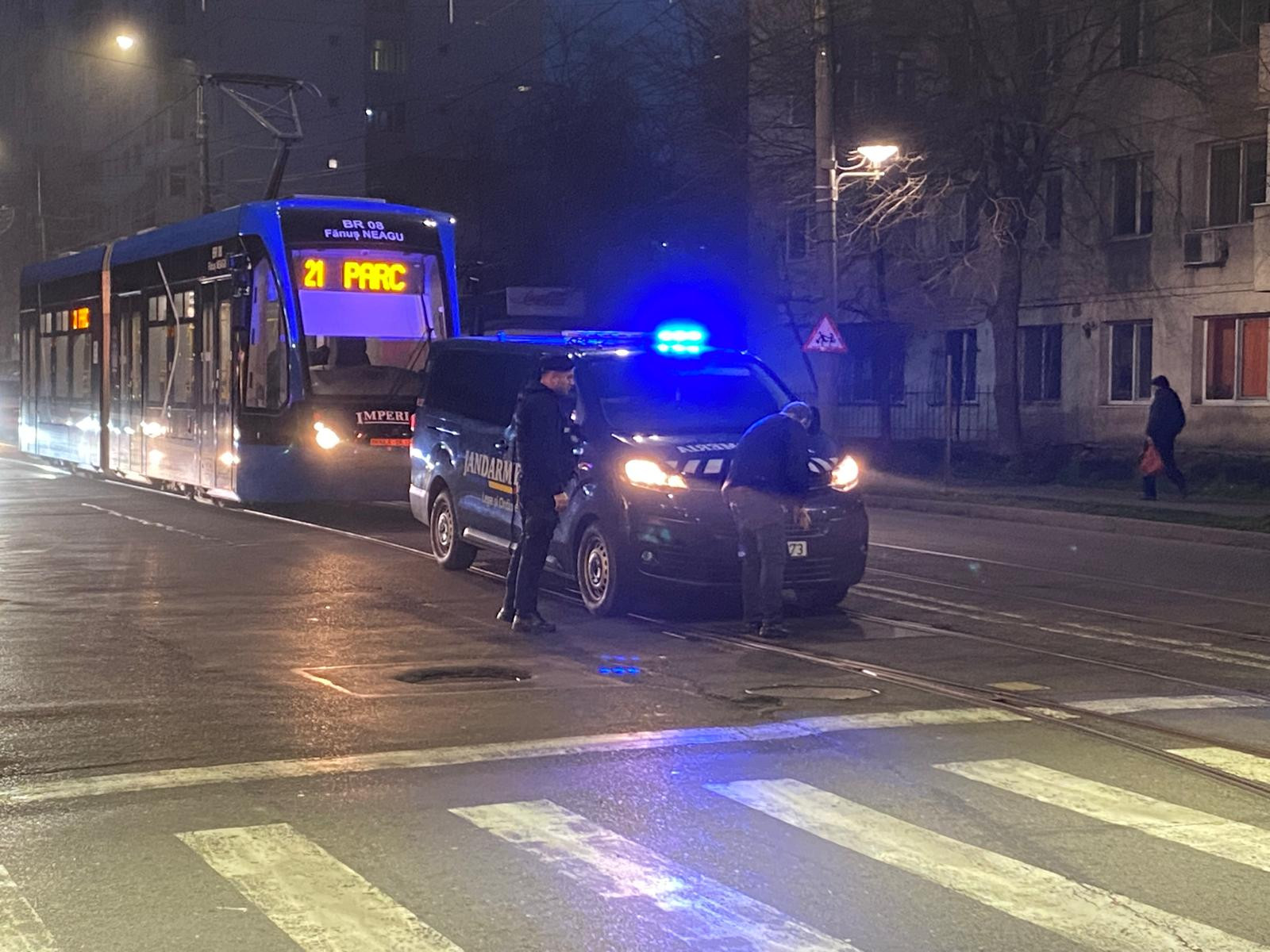 ”În jurul orei 16.00, în timpul executării serviciului, echipajul de jandarmi aflat la semafor în paralel cu un tramvai, într-o intersecţie din Brăila, a observat cum tramvaiul a început să se deplaseze fără vatman la comandă. Acesta coborâse anterior pentru a schimba macazul, uşile tramvaiului s-au închis automat, vatmanul rămânând jos, lângă mijlocul de transport în comun. Sesizând pericolul, echipajul de jandarmi a acţionat rapid, poziţionând autospeciala în faţa tramvaiului şi utilizând semnalele luminoase pentru a atenţiona ceilalţi participanţi la trafic”, a transmis, joi, Jandarmeria, într-un comunicat de presă.
