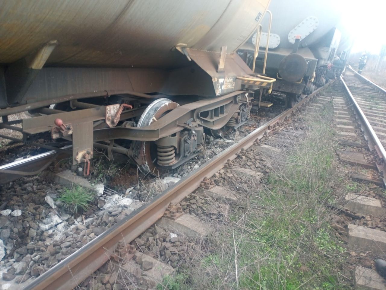 Un tren a deraiat la Arad. Două vagoane-cisternă în care se află carburanţi s-au răsturnat | FOTO