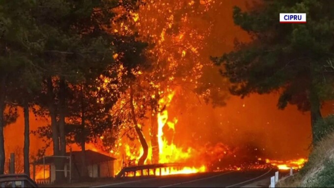 Canicula face ravagii în sud-estul Europei. Temperaturile toride și vântul favorizează incendii cu efecte teribile. În Cipru, doi oameni au murit în mașina lor ajunsă din urmă de foc.
