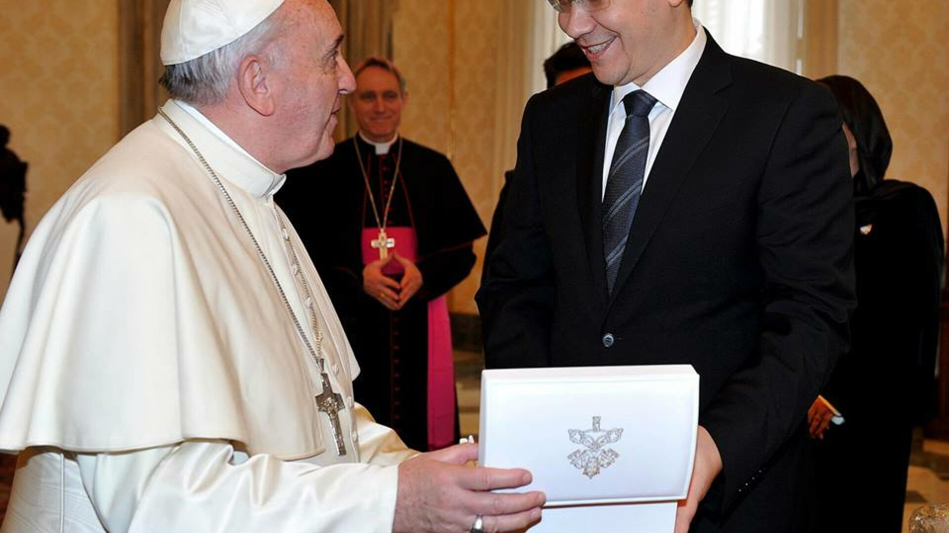 Victor Ponta a fost primit in audienta de Papa Francisc. Ce cadouri a primit premierul