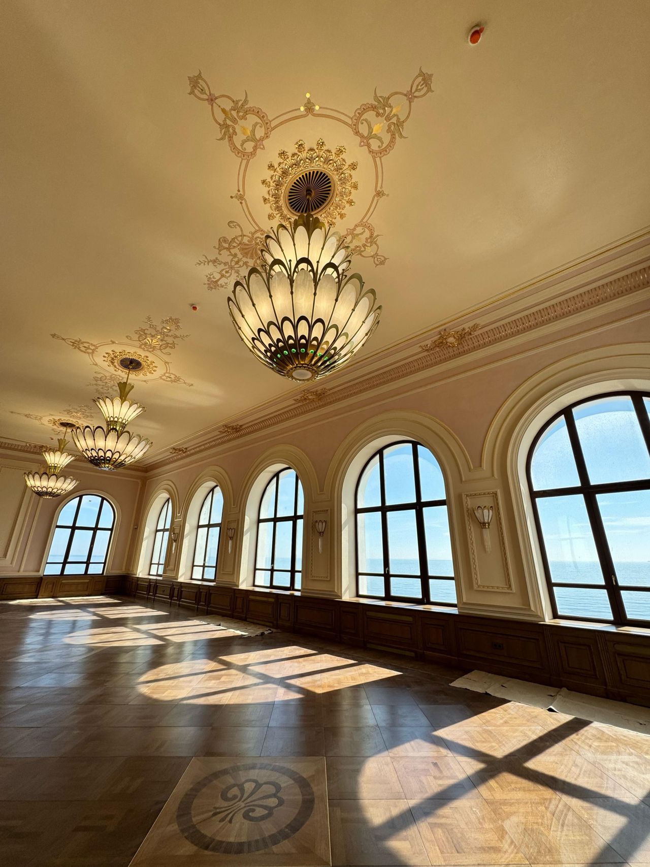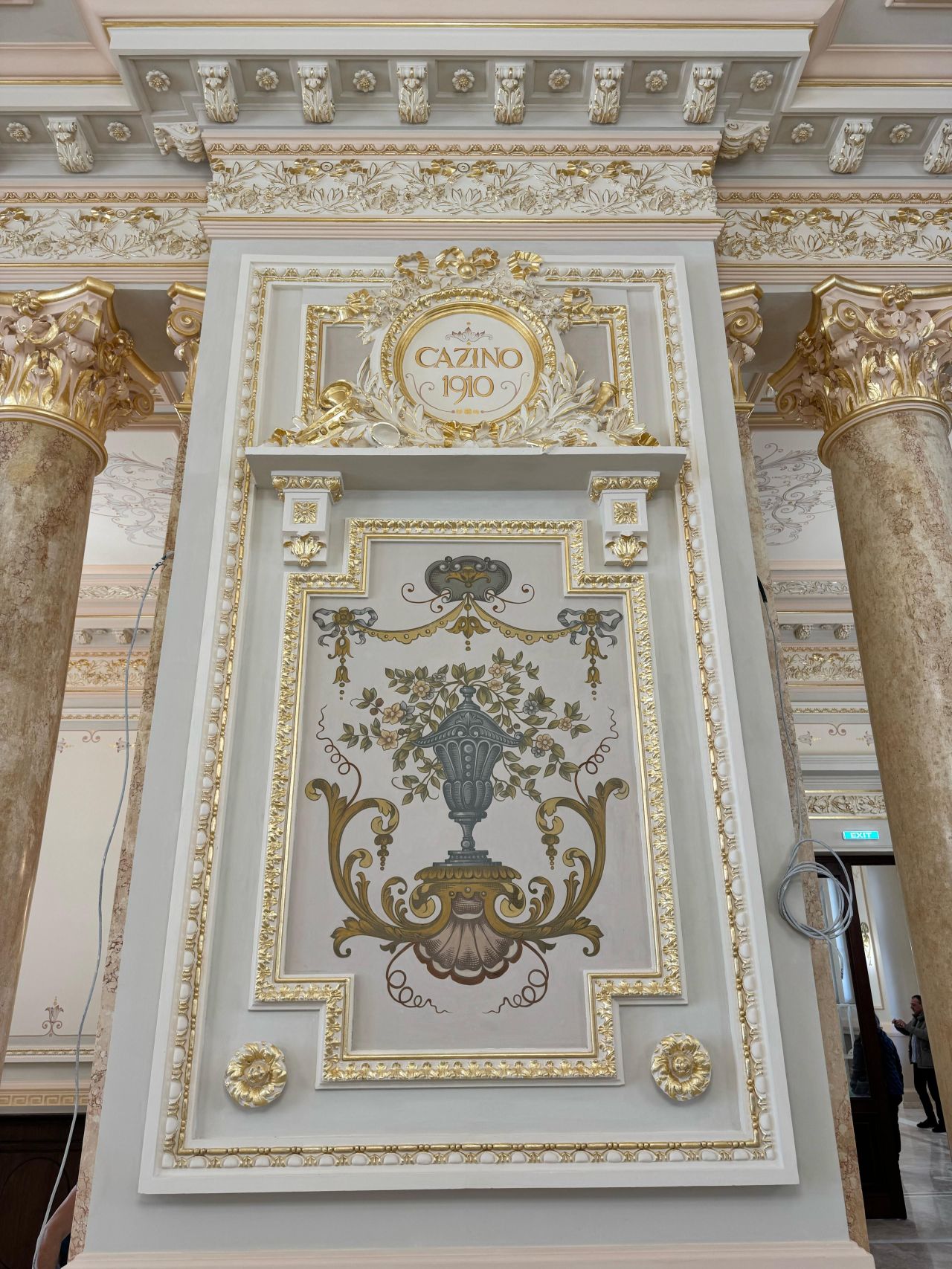 În fosta sală restaurant a cazinoului, fiecare ornament de pe tavan și de pe pereți a fost refăcut cu grijă. Gabriel Puchiu este cel care a coordonat lucrările de restaurare a Cazinoului