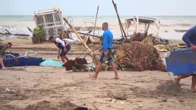 ”Toate beach-barurile au fost distruse, practic, nu mai există nimic, o mare bucată din plajă nu mai există, iar apa care vine din toată Vama Veche se varsă acum în mare”, transmite corespondetul PRO TV Yvette Mîrza.
