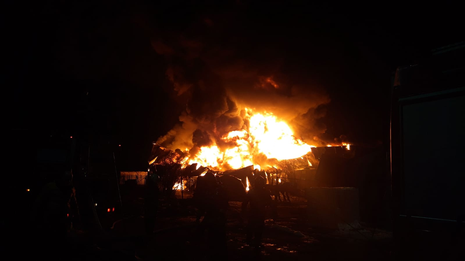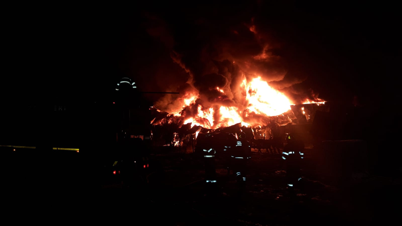 VIDEO. Incendiu violent în Ilfov. O hală de producție a fost mistuită de flăcări