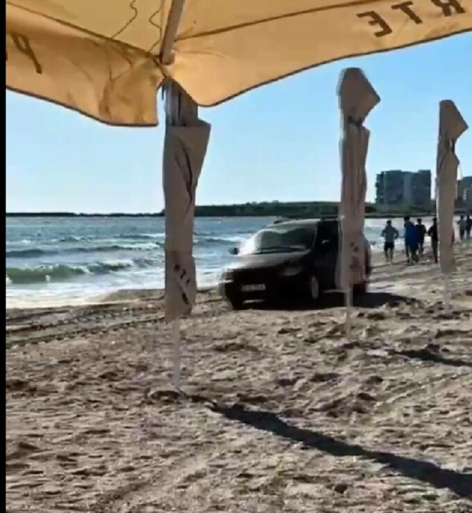 În imaginile apărute în spaţiul public se observă cum o maşină a intrat pe plajă şi circulă pe ţărm, iar la un moment dat autoturismul rămâne blocat în nisip şi este tractat de un tractor.