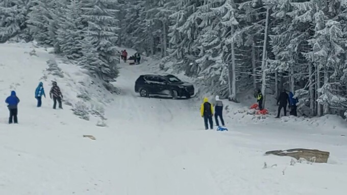 VIDEO. Un șofer a intrat cu mașina de teren pe o pârtie din Parâng și a pierdut controlul. Surse: Susține că a greșit drumul
