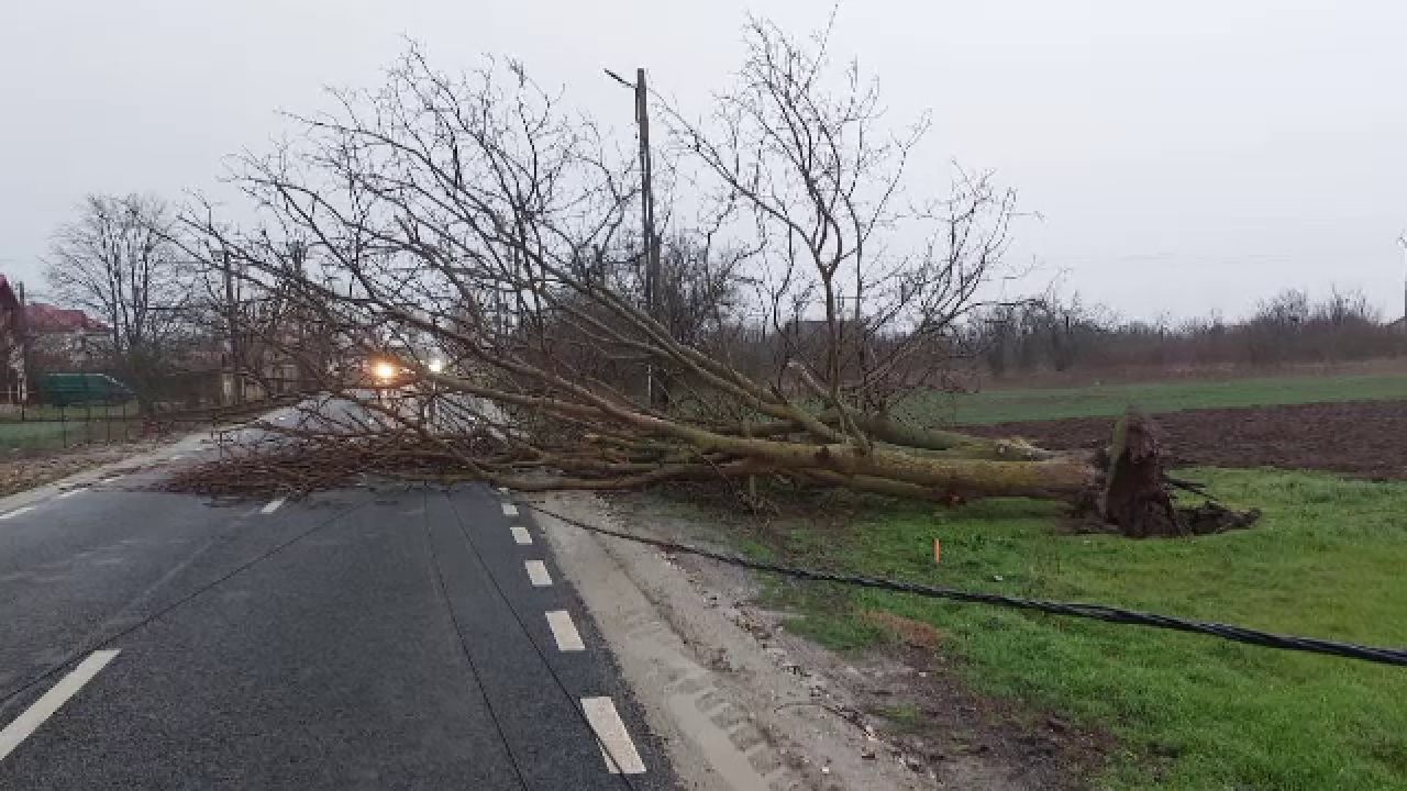Iar în Prahova, un bărbat și fiul său minor au scăpat ca prin minune fără răni, după ce un copac rupt de vânt a căzut peste mașina în mers în care cei doi se aflau, pe raza comunei Tinosu.