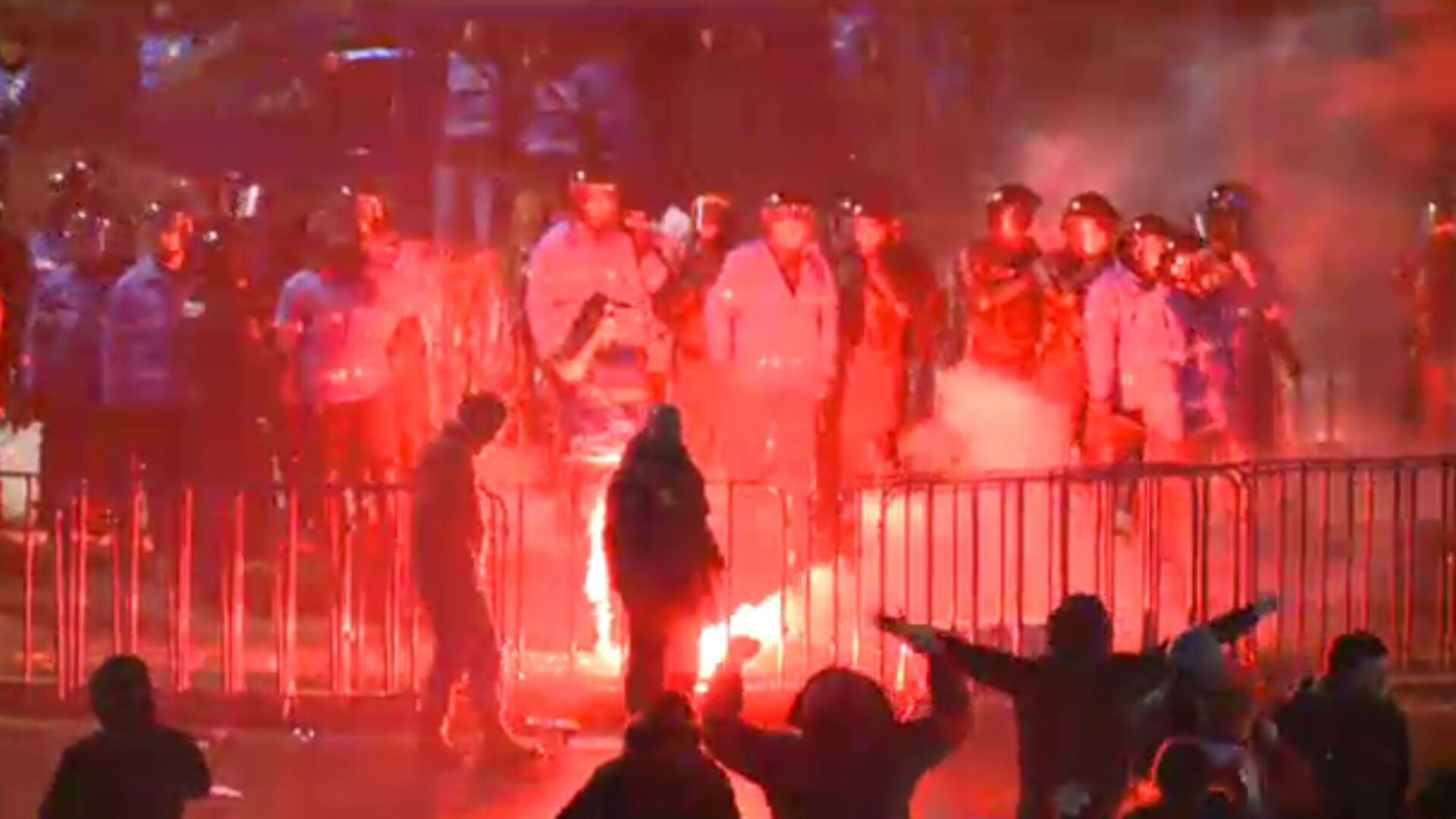 UPDATE 00:10 Jandarmii au gasit asupra unor membrii ai grupurilor care au provocat violente sticle incendiare si cutite.