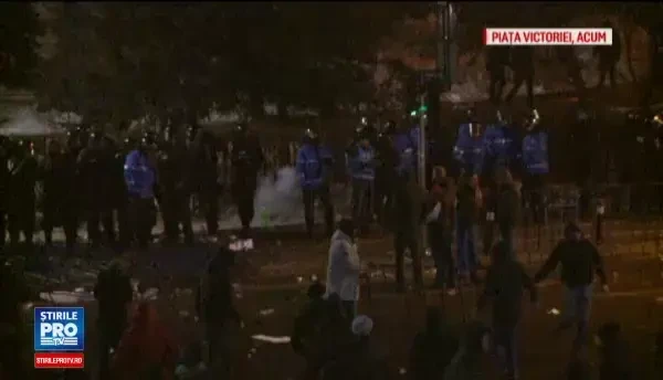 UPDATE 00:30 Jandarmii au declansat o ofensiva asupra unui grup izolat de protestatari violenti din Piata Victoriei si i-au dispersat in zona bulevardului Nicolae Titulescu. Cativa au fost pusi la pamant si urcati apoi in dubele Jandarmeriei. Timp de o ora, mai multi protestatari, banuiti ca fac parte din galeriile unor echipe de fotbal, potrivit jandarmilor, au aruncat cu petarde, fumigene, sticle si pietre inspre fortele de ordine. Jandarmii au replicat cu gaze lacrimogene. In final, grupul a fost dispersat. In urma acestei actiuni, jandarmii au ocupat Piata Victoriei iar protestul este pe cale sa se incheie.