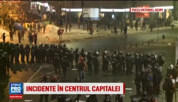 La ora transmiterii acestei stiri, in Piata Victoriei se afla importante forte de ordine, venind inclusiv masini ale pompierilor si trupe de la Brigada Speciala de Interventie. Jandarmii au format doua cordoane in jurul cladirii Guvernului si au izolat cele doua grupuri violente, care au continuat sa arunce cu fumigene, cu sticle si cu petarde. In urma cu scurt timp, persoanele din cele doua grupuri violente au reusit sa fuga pe Calea Victoriei, prin spatele blocurilor din zona. Zona din fata intrarii principale a Guvernului s-a golit, dar au mai ramas cateva mii de manifestanti pe bulevardele Kiseleff si Aviatorilor.