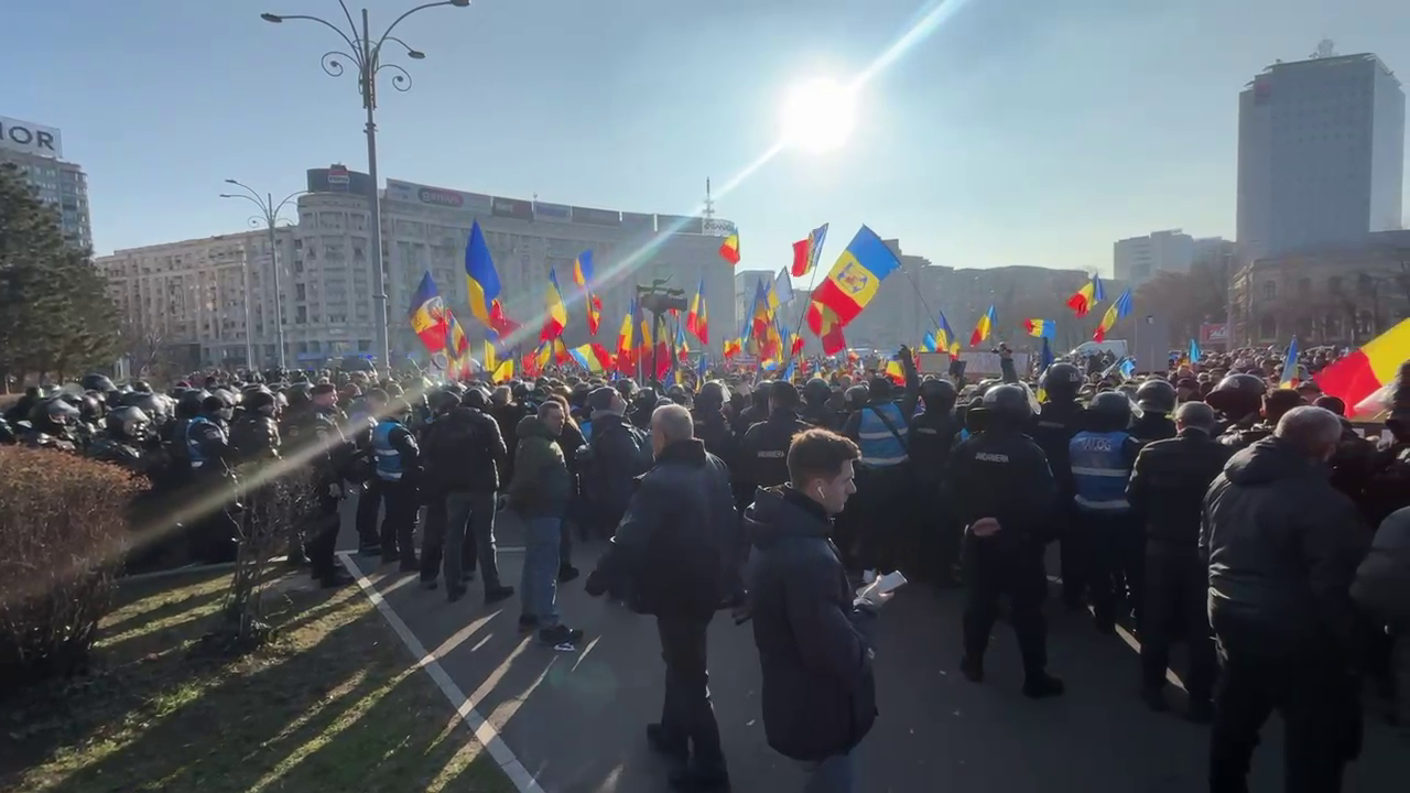 Câteva sute de simpatizanţi ai lui Călin Georgescu au forțat dispozitivul de panouri metalice, au exercitat presiuni asupra forțelor de ordine și au blocat carosabilul din fața Palatului Victoria, conform News.ro.