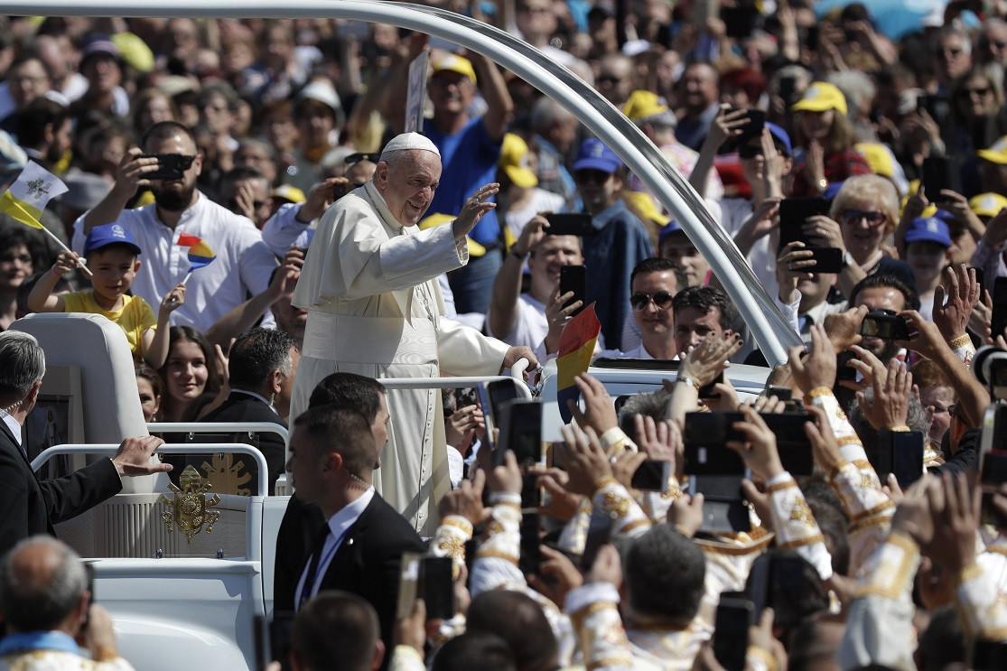 Papa Francisc a părăsit România. La finalul vizitei istorice, Papa a făcut o plecăciune și i-a binecuvântat pe oameni