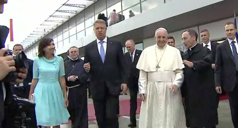 La plecarea spre Roma, pe Aeroportul din Sibiu au fost prezenți Klaus Iohannis și Carmen Iohannis.
