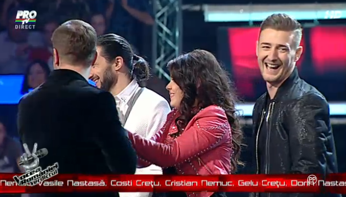 23:05 Corina Chiriac a venit la Vocea Romaniei, a cantat alaturi de Mihai Chitu si a incantat pe toata lumea. Multi s-au grabit sa o imbratiseze.