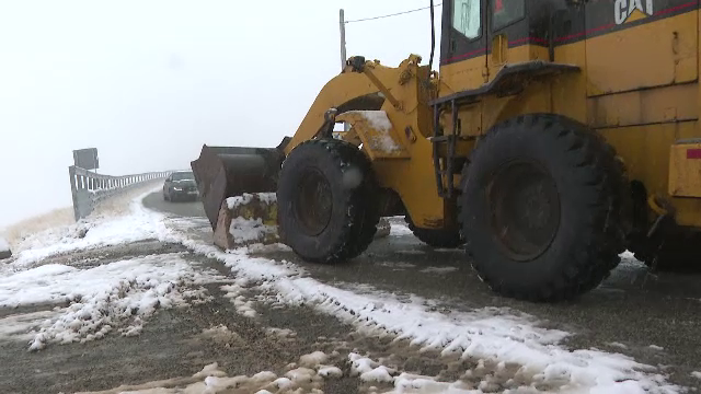 În munții Făgăraș, stratul de zăpadă măsoară în unele locuri chiar și 20 de cm. Pe Transfăgărășan, drumarii au intervenit să curețe asfaltul.
