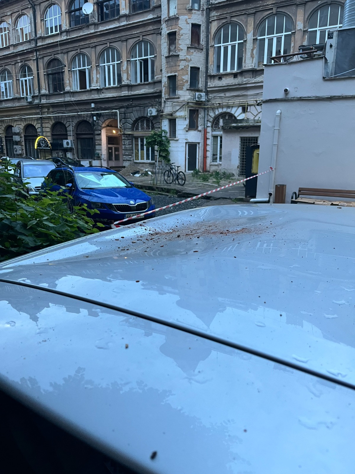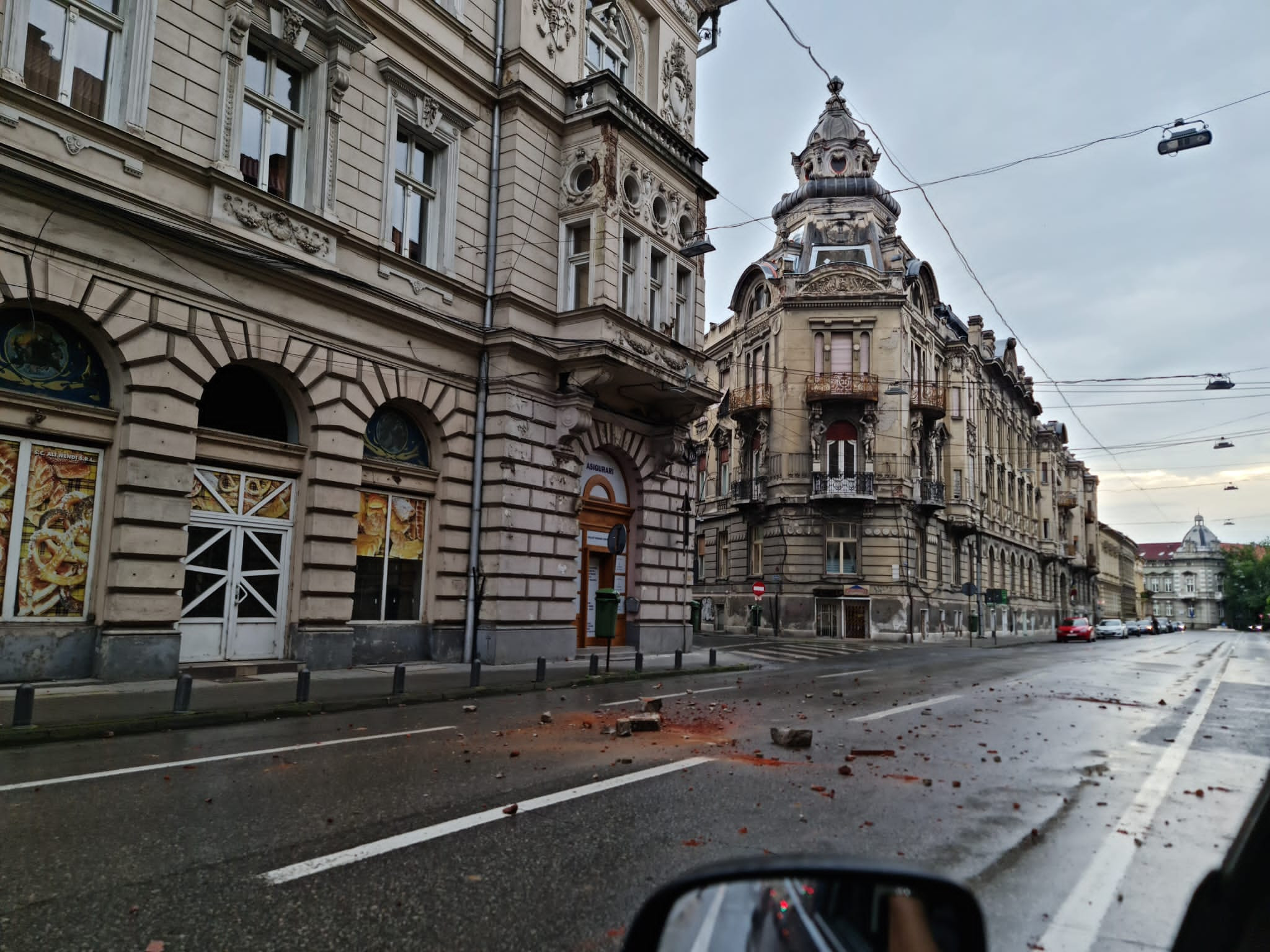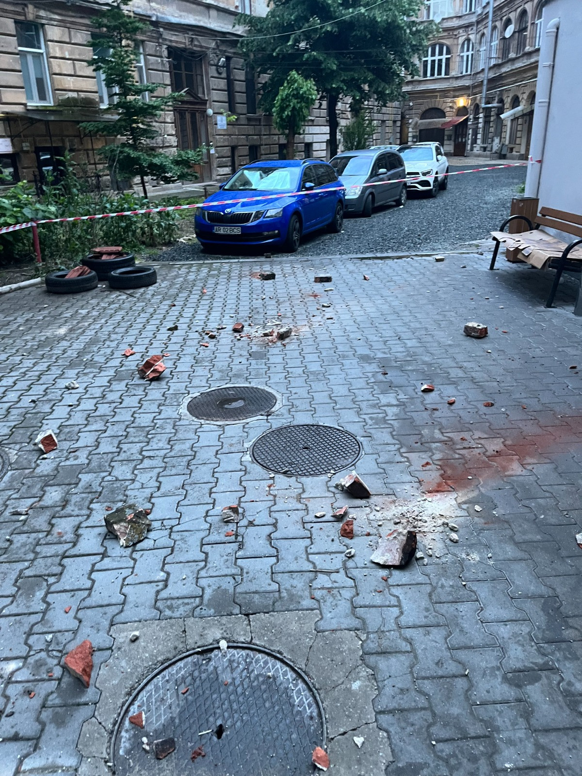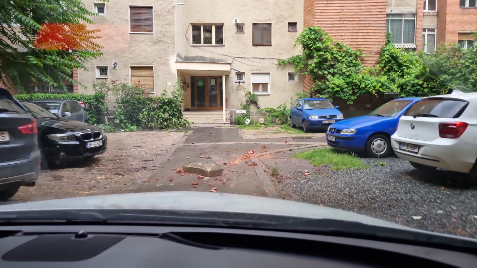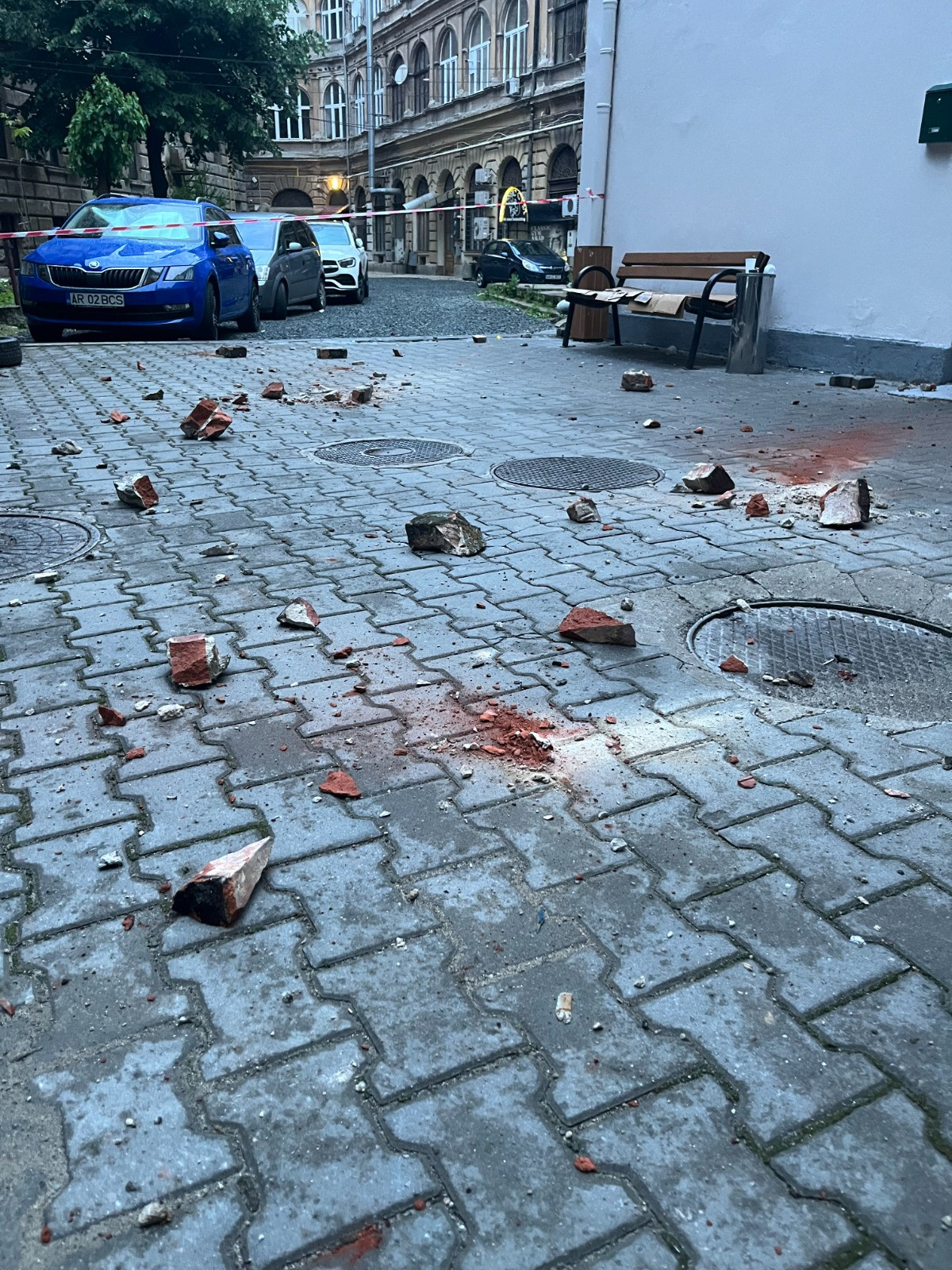 Bucățile de zidurile căzute de pe clădiri au deteriorat mașini - după cum se vede în imagini - și i-au pus în primejdie pe cei din jur. În materialul video se vede cât de aproape ajunge de copii un bolovan.