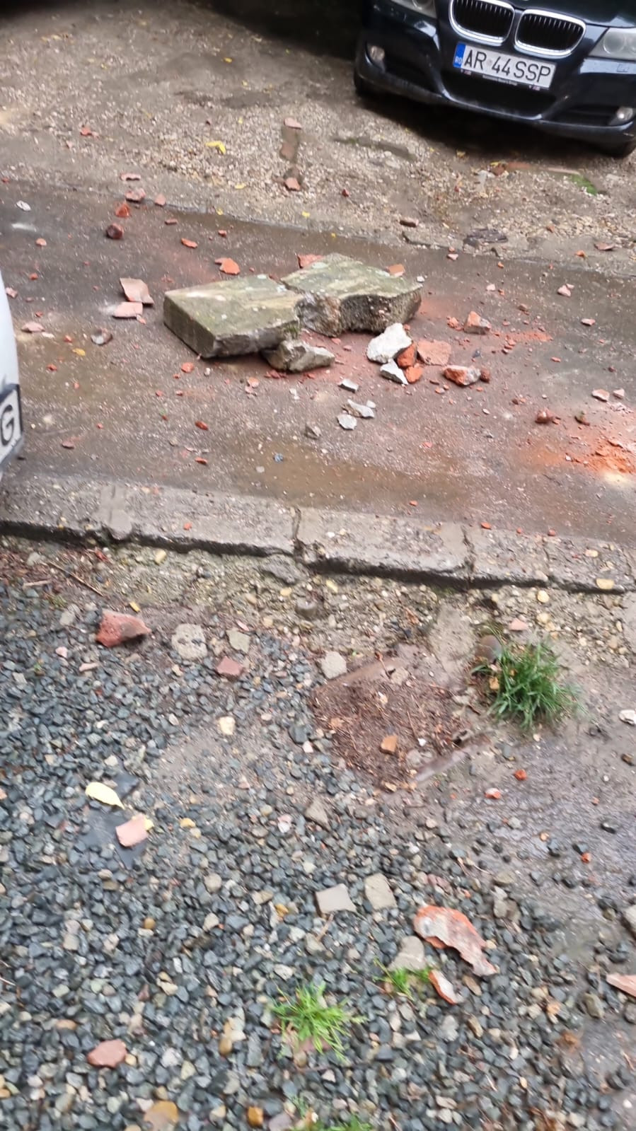 Bărbat: „Cel puțin 20 de cărămizi au căzut de la vecini de pe casă.”