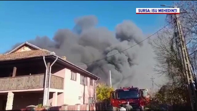 Incendiu cu pericol de explozie, într-o gospodărie din localitatea Vânju Mare, județul Mehedinți. O anexă a fost cuprinsă de flăcări, iar focul s-a extins pe 300 de metri pătrați.