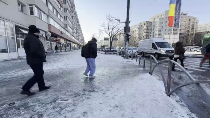 În București, după ninsoare, trotuarele necurățate au fost acoperite de o gheață periculoasă. Mulți trecători au alunecat și căzut în aceste capcane sticloase și au ajuns la camerele de gardă cu luxații și fracturi.