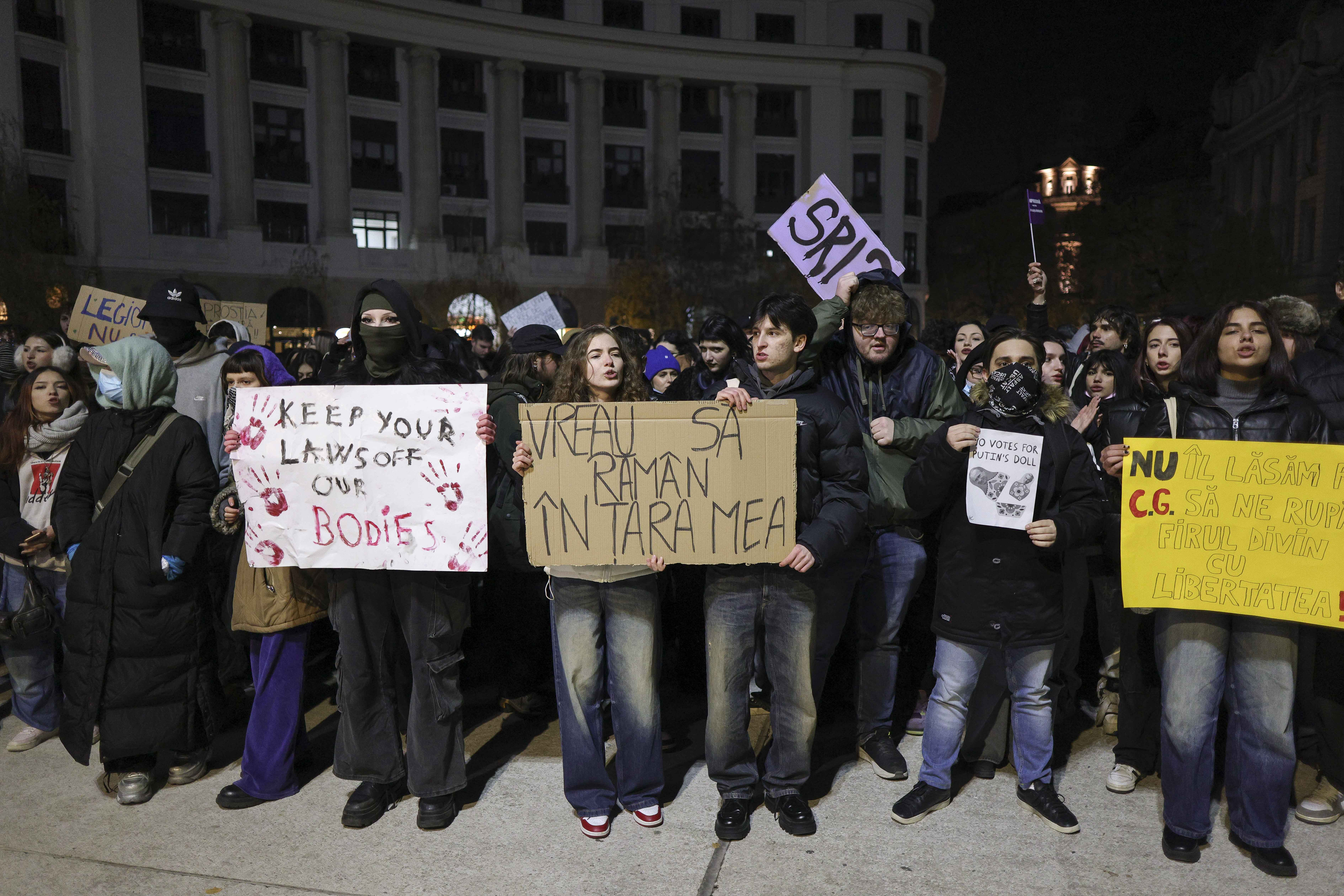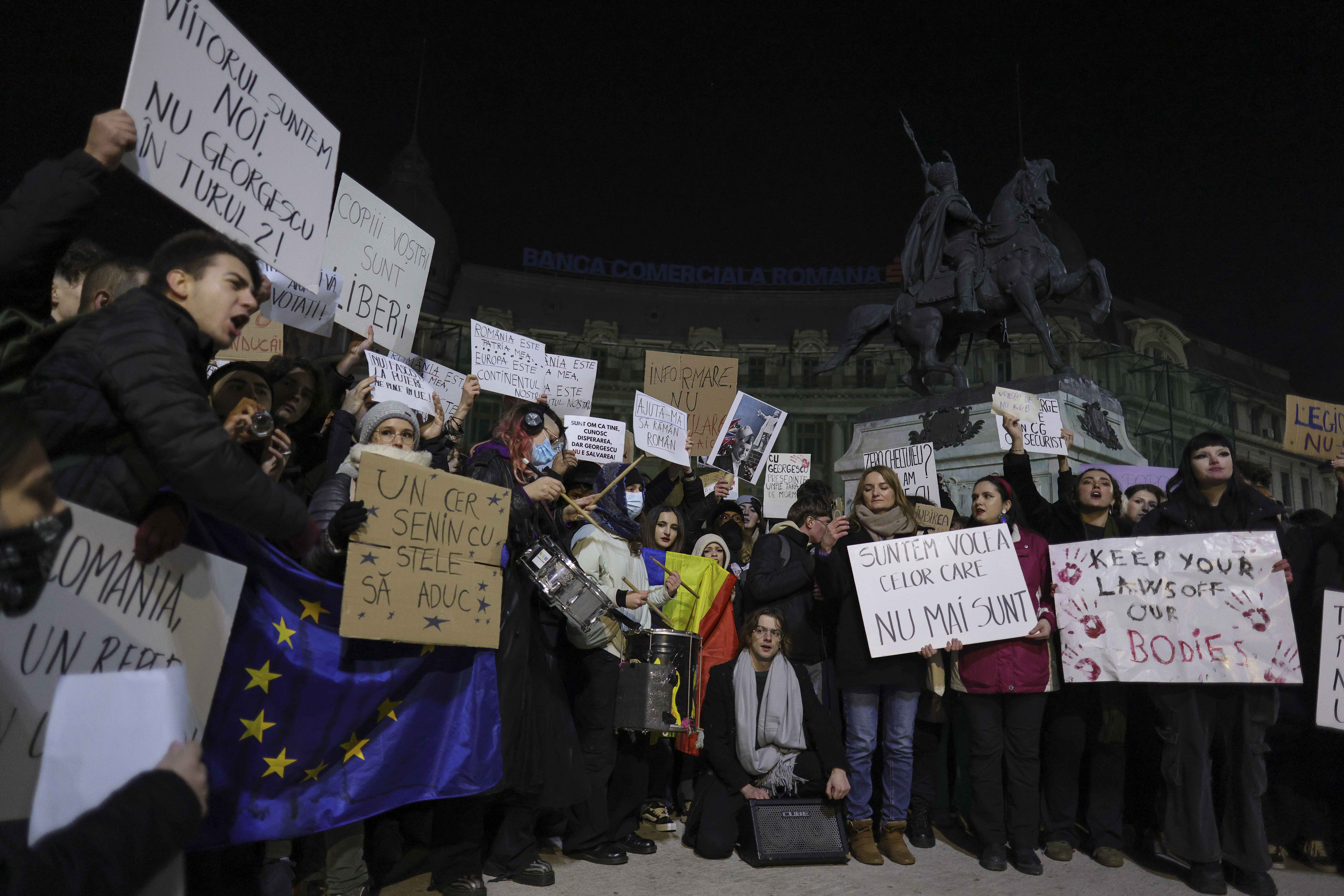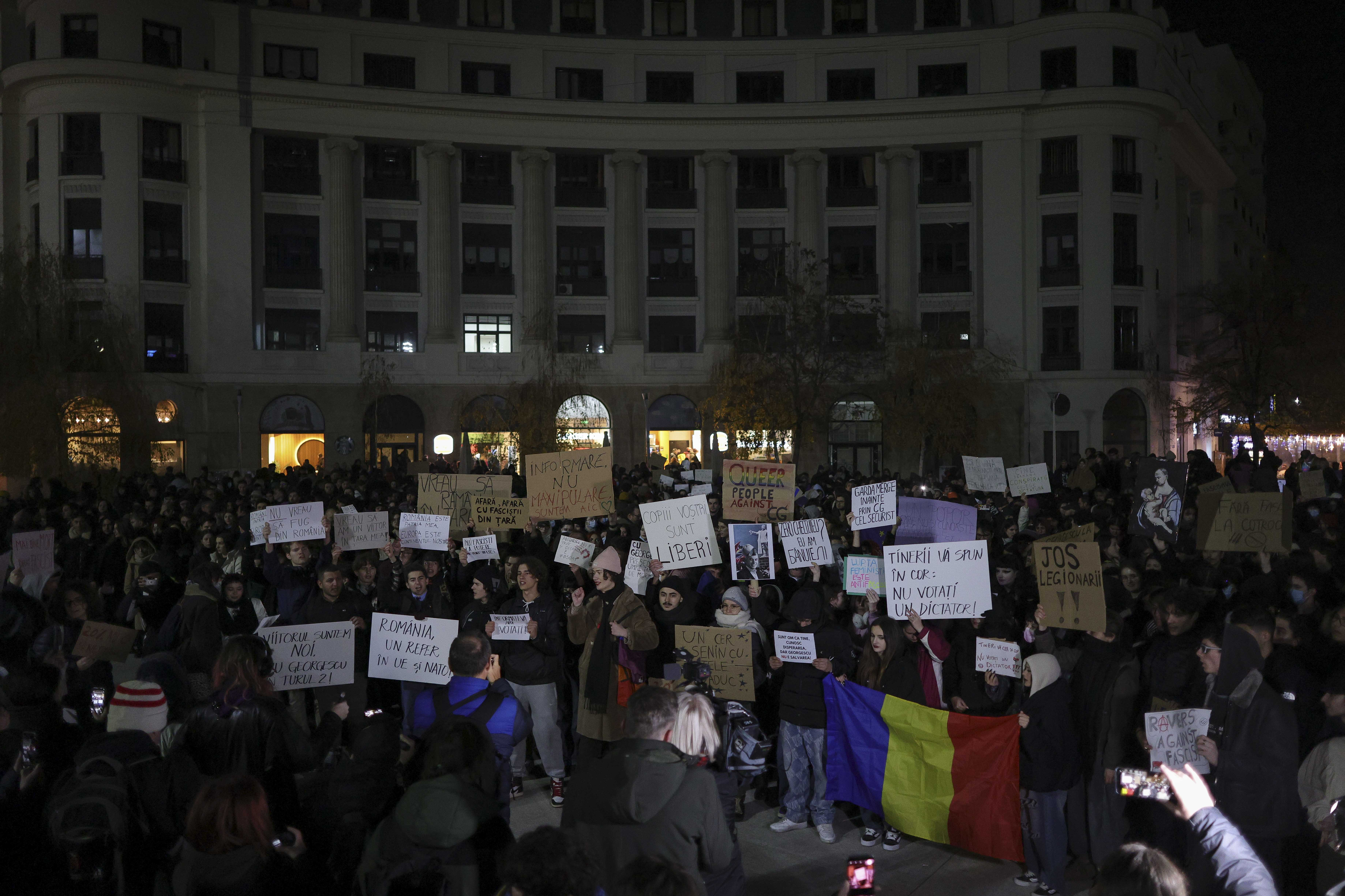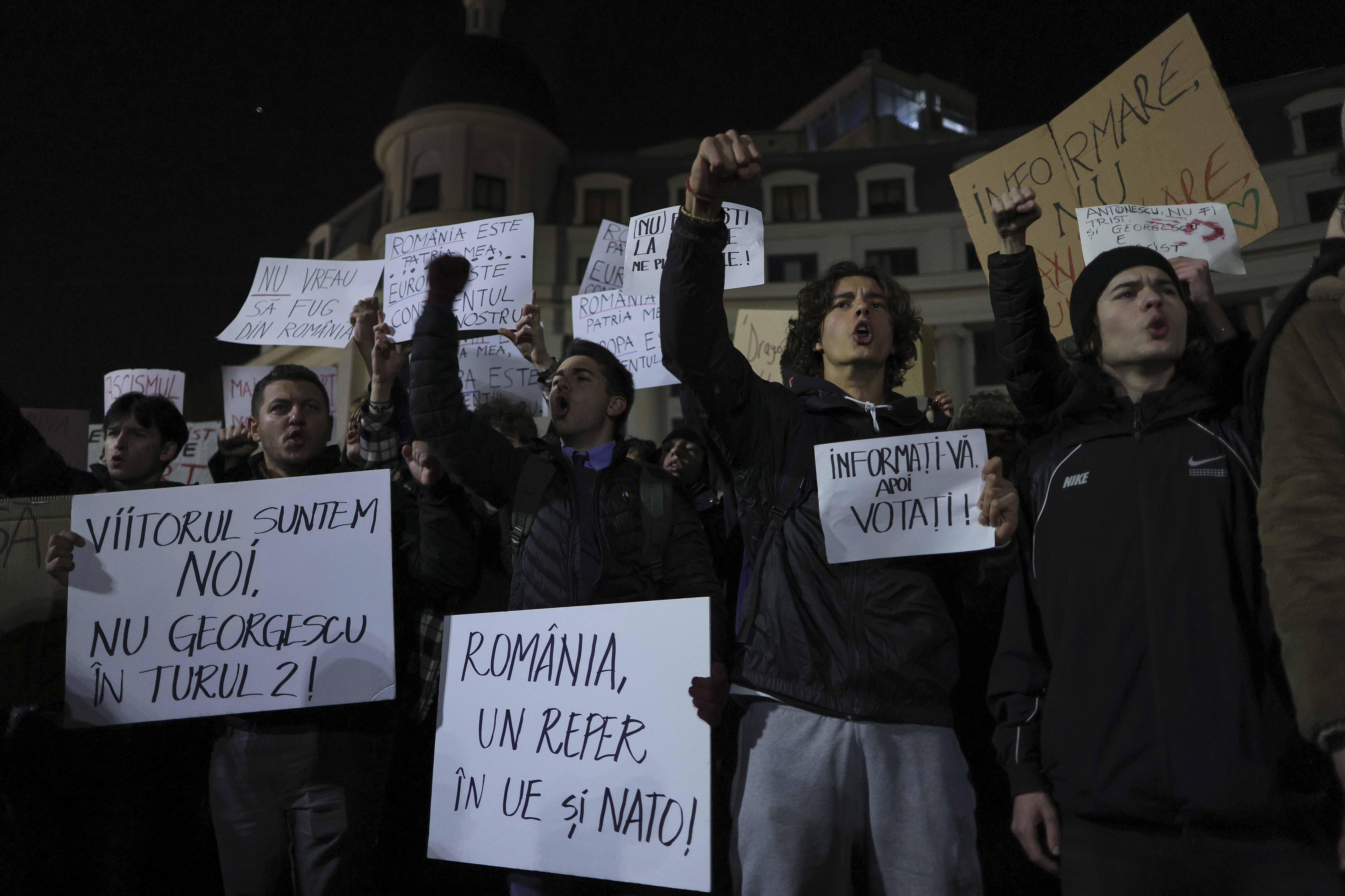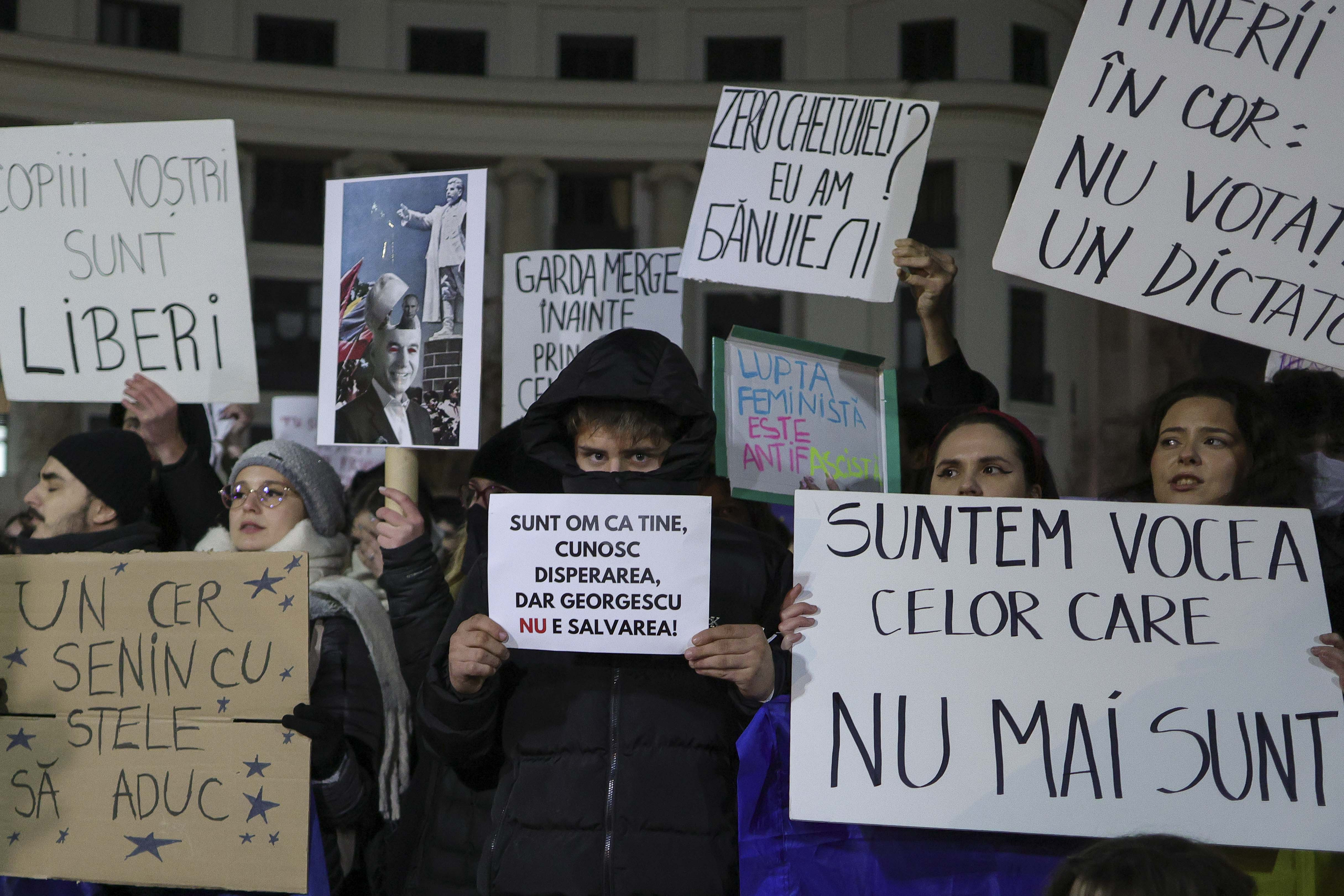 Sute de tineri au ieșit în stradă, marţi seară, în mai multe orașe din țară, pentru a protesta după ce Călin Georgescu a câștigat primul tur al alegerilor prezidențiale.