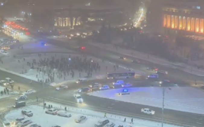 Piata Victoriei din Capitala a fost iarasi animata, pentru a noua seara la rand, in ciuda ninsorii: "E cod ROSU de hoti"