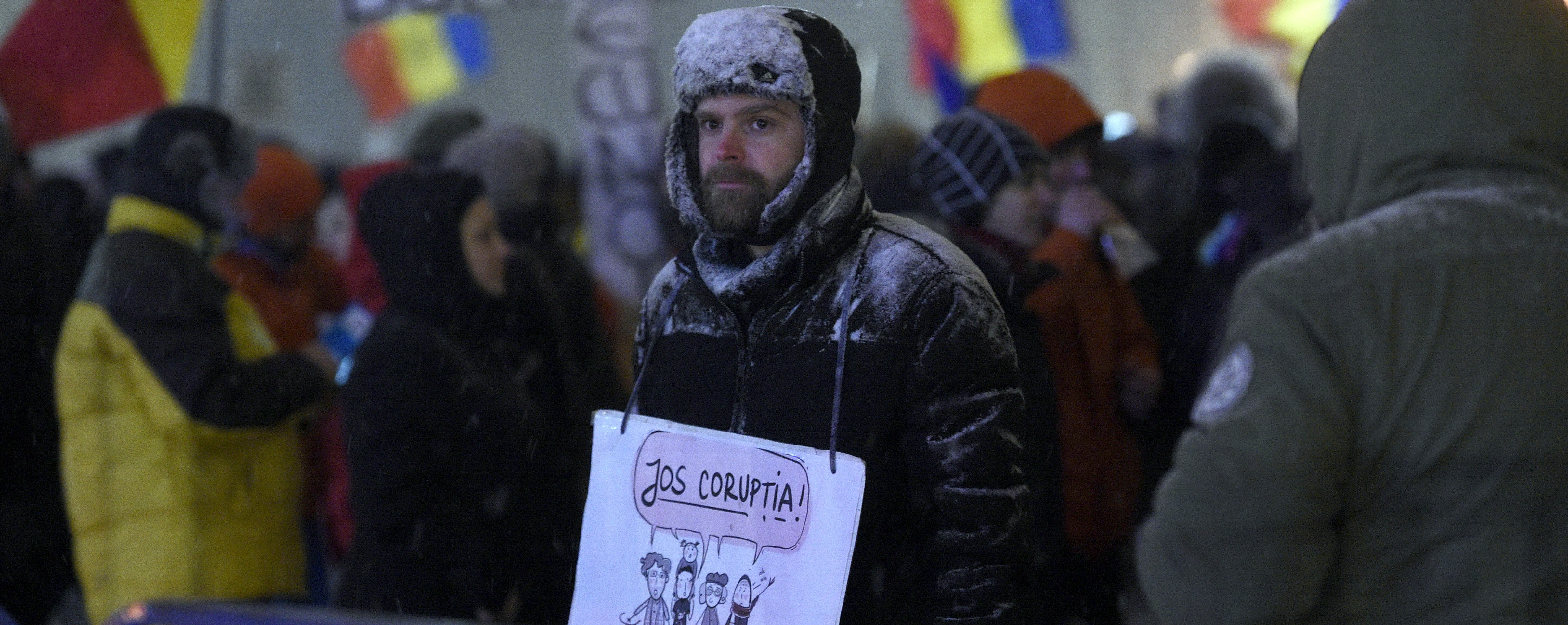 Cele minus sapte grade Celsius din termometre nu i-au speriat nici pe protestatarii din Iasi: "Am iesit sa tragem un semnal de alarma pentru derapajele grave pe care clasa politica le face. Mi-au inghetat buzele."