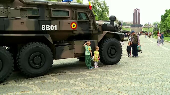 Puțin mai în față, sunt aliniate în fața Monumentului Ostașului Necunoscut transportoarele blindate pirania, iar alături tehnică nouă de luptă, o dronă achiziționată la fel anul trecut, care poate fi acționată de doi militari și poate nimici țintele aeriene.
