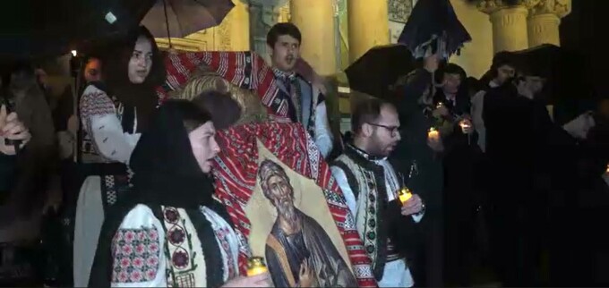 În fruntea alaiului de oameni au fost mai mulți tineri, care au ghidat mulțimea pe străzi, cu făclii aprinse în mâini.