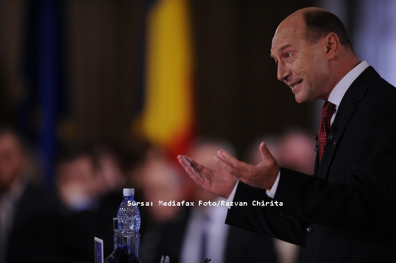 Replica lui Basescu: "Se afla pe site. In timpul meu, Romania a intrat in UE. S-a respectat angajamentul de 16%, s-a alocat 6% pentru educatie, s-a dezvoltat un sistem de protectie impotriva inundatiilor, s-au condamnat crimele comunismului, s-au deschis 2.000 de dosare ale Securitatii".