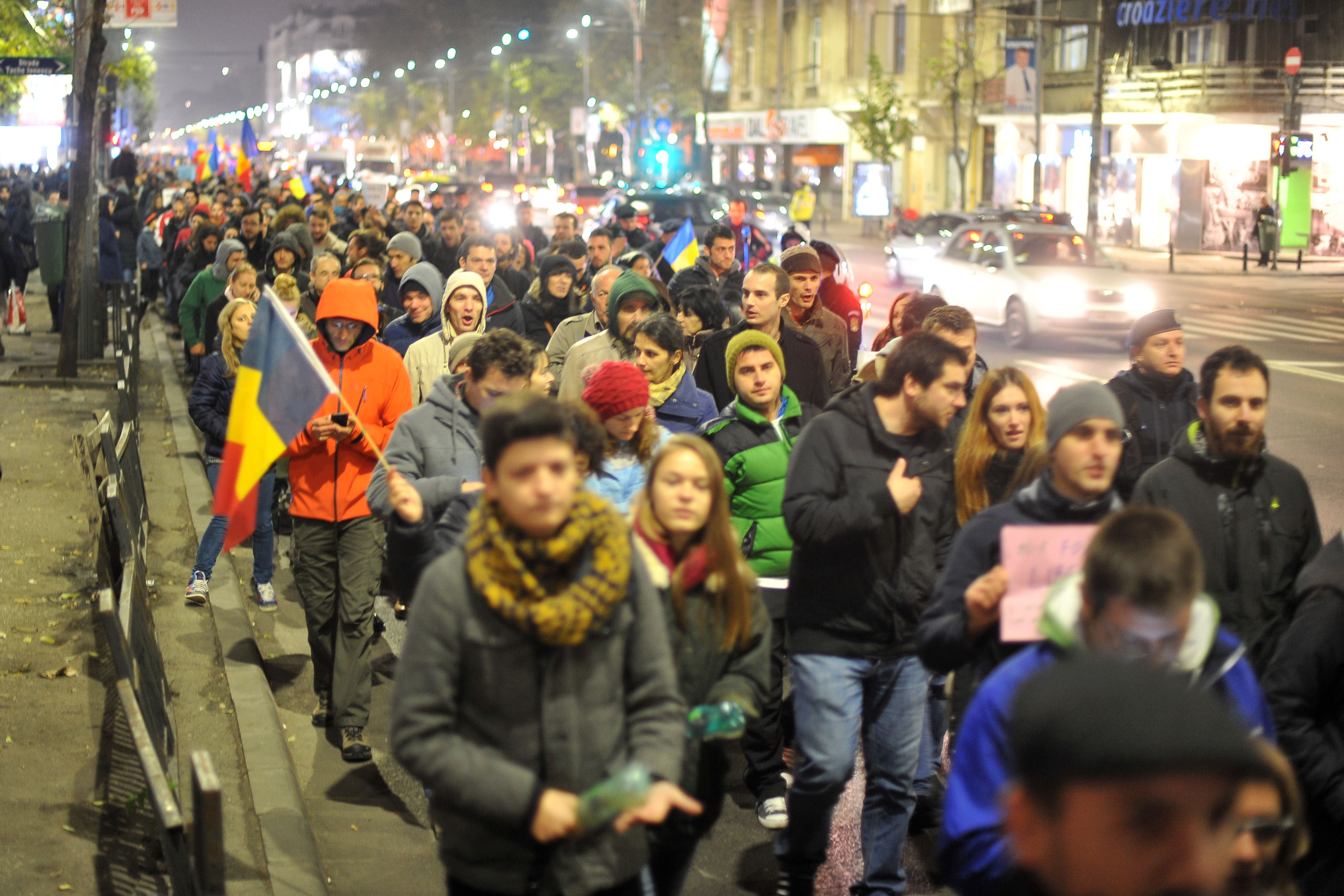 De asemenea, ei striga "Hoții", "Timișoara", "Noi suntem romani", "Sibiu", "Unitate", "Ponta, demisia" și "DNA sa vina sa va ia". Si la Arad, aproximativ 50 de tineri, membri si simpatizanti ai ACL, au iesit in fata Primariei dupa aflarea rezultatelor exit-poll-urilor, agitand steaguri tricolore si scandand "Libertate".