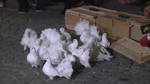 Ramona Ioana Bruynseels a fost întâmpinată cu aplauze de susținători, la Biroul Electoral Central, în seara în care și-a depus candidatura la prezidențiale. La ieşirea din sediu, zeci de porumbei albi au fost eliberaţi spre cer.