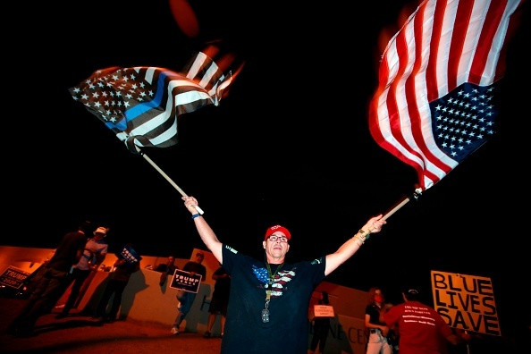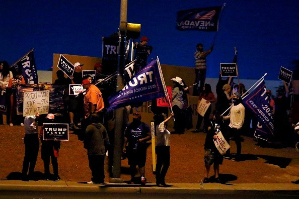 Mai multe persoane s-au adunat în fața Departamentului Elctoral Clark County în timpul numărătorii voturilor, conform The Independent.