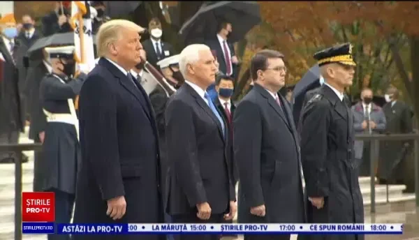 Donald Trump a ieșit pentru prima oară în public după alegeri, la Cimitirul național din Arlington, cu ocazia Zilei Veteranilor. Nu a stat de vorbă cu presa, dar președintele în exercițiu susține în continuare acuzațiile de fraudă, în pofida absenței oricăror dovezi.