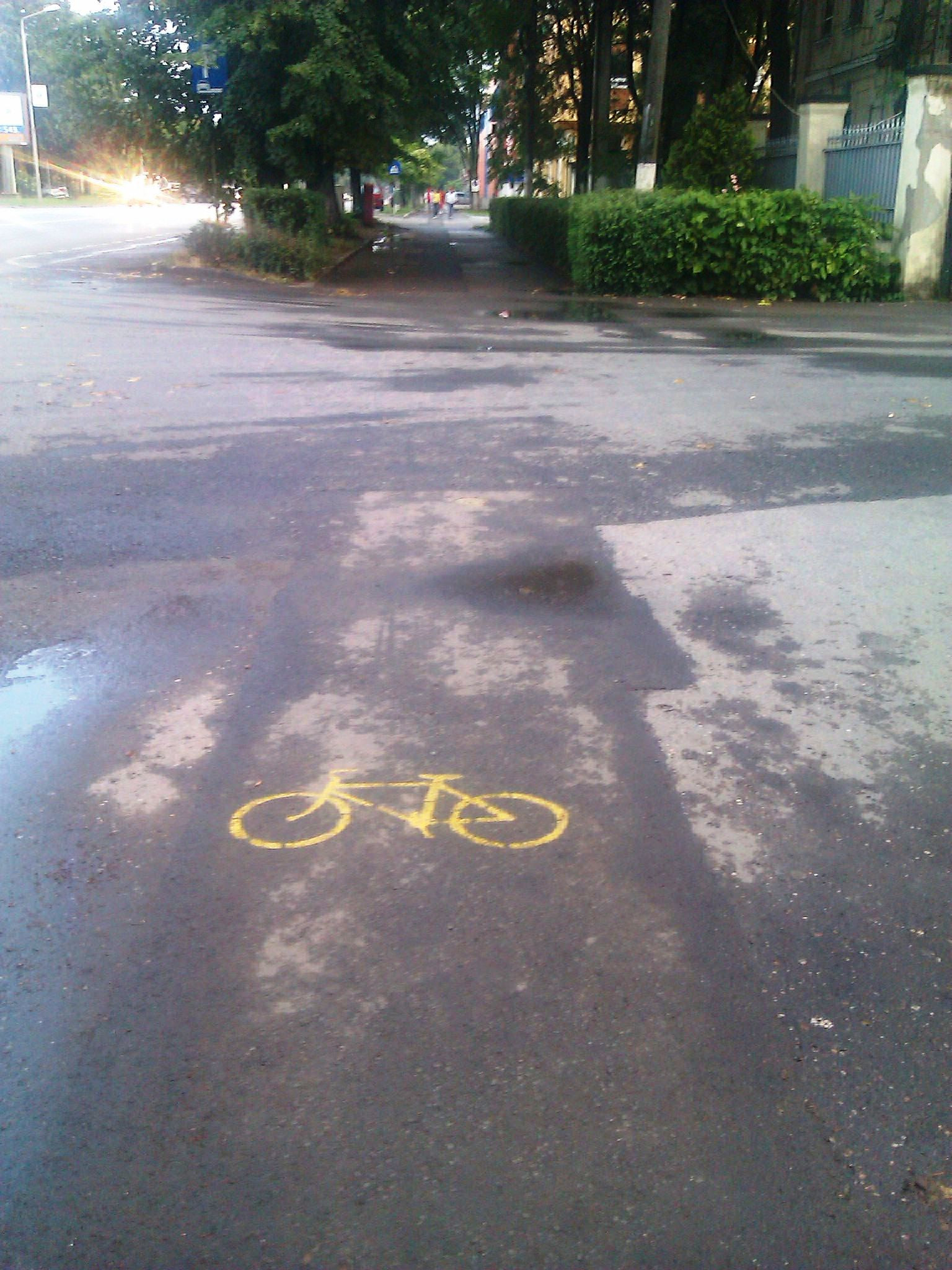 Nu exista insa si indicatoarele albastre prevazute de lege in astfel de cazuri, pentru a se semnaliza existenta pistei. Astfel, e usor de inteles ca marcajele au fost facute ilegal, fapt confirmat pentru stirileprotv.ro/vest de catre reprezentantii Primariei Arad.