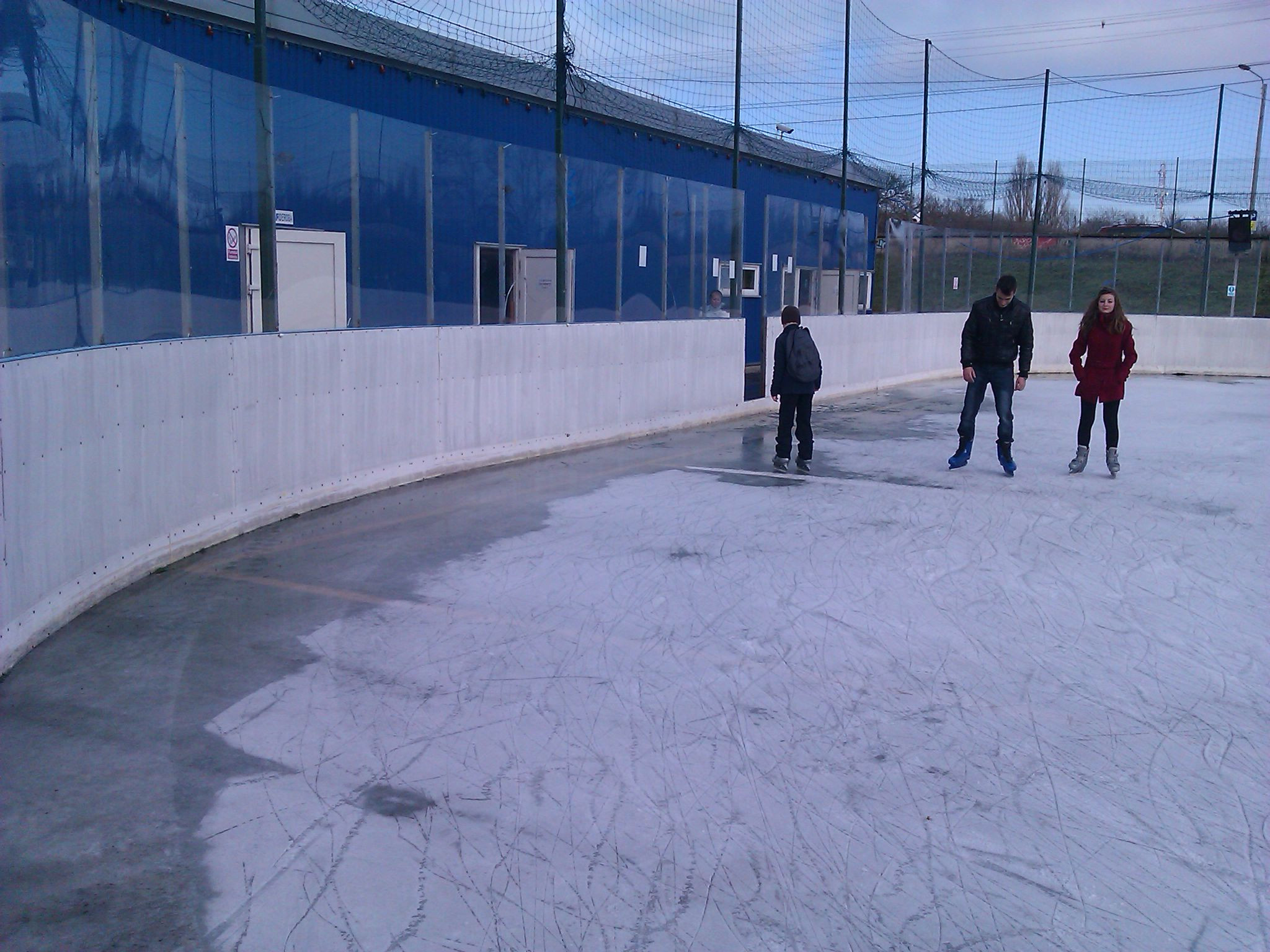 Desi astazi nu au fost mai mult de cinci grade afara, iar soarele a stralucit putin, pe gheata patinoarului aradean au aparut baltile. Doar cativa copii s-au incumetat sa patineze pe bani in aceste conditii.