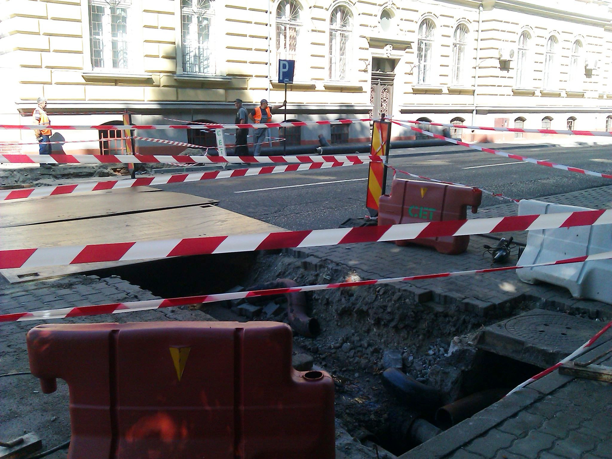 Doar ca de aceasta data sunt alti muncitori, cei ai CET, care au fost nevoiti sa intervina dupa ce au aparut fisuri in conductele de apa calda din zona. Ei acuza ca lucrarile de reabilitare a bulevardului, finantate de municipalitate, au fost facute de mantuiala.